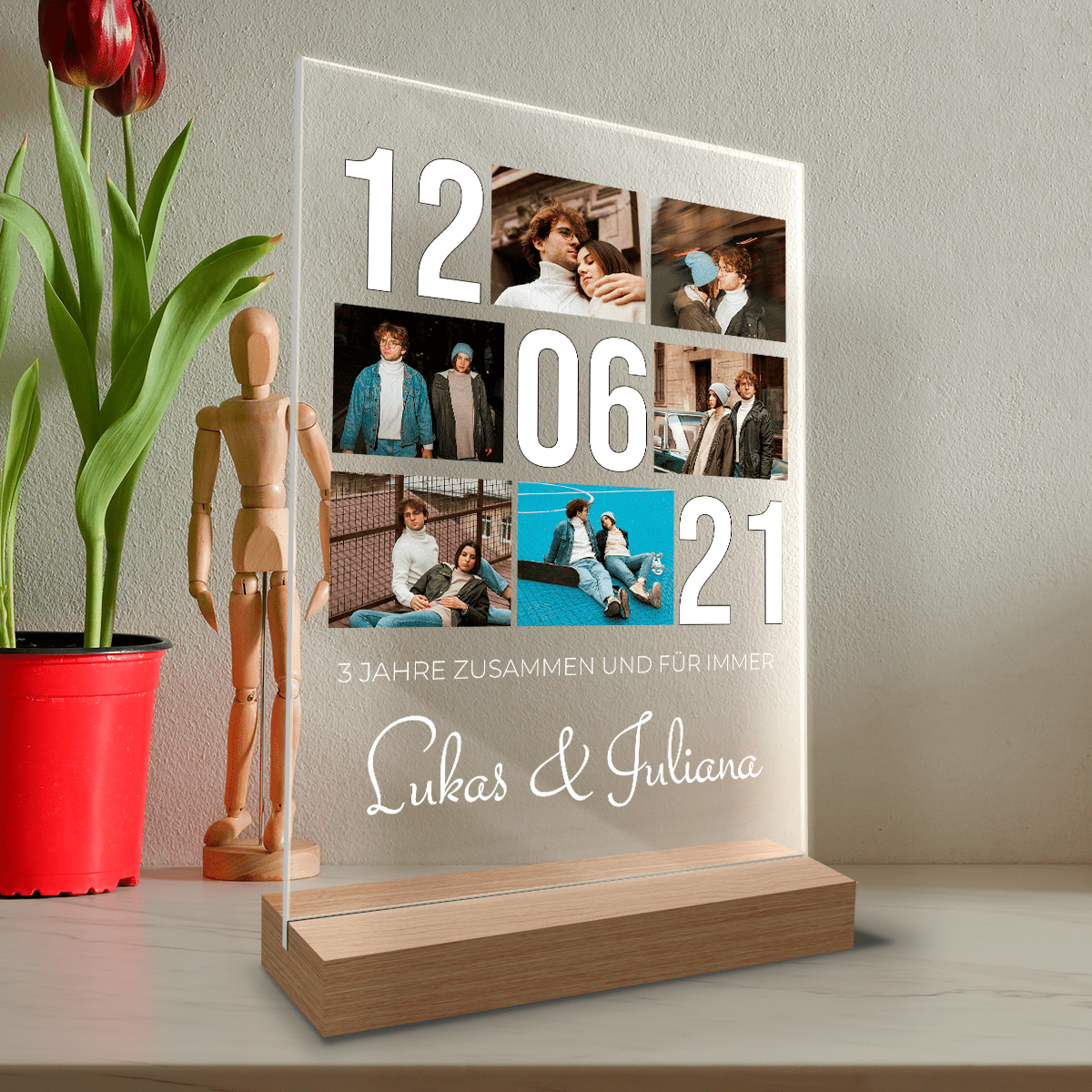 Gemeinsam für immer Inschrift + Fotos - Druck auf Glas, personalisiertes Geschenk für Paare