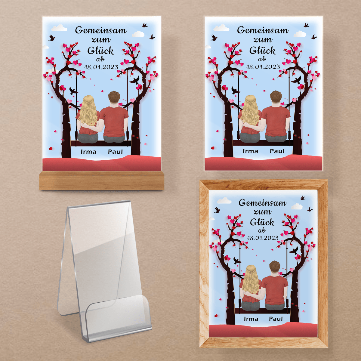 Gemeinsam zum Glück - Druck auf Glas, personalisiertes Geschenk