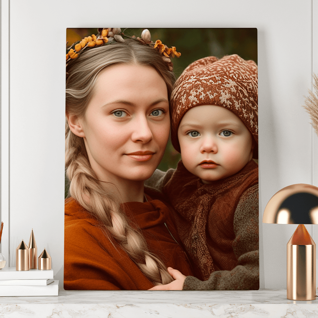 Gemeinsames Porträt von Mama und Kind - Druck auf Leinwand, personalisiertes Geschenk für Mama