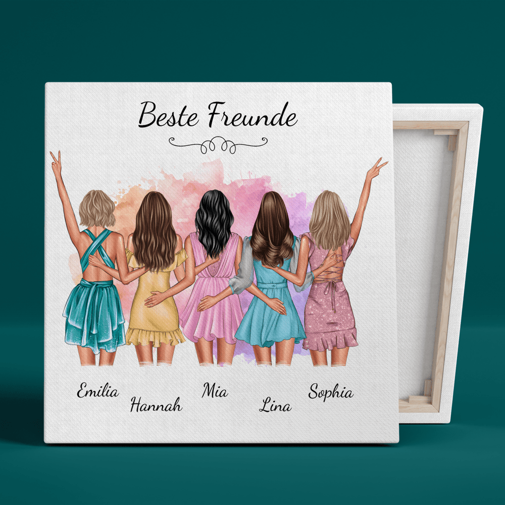 Grafik der besten Freunde + Namen - Druck auf Leinwand, personalisiertes Geschenk für Freundin