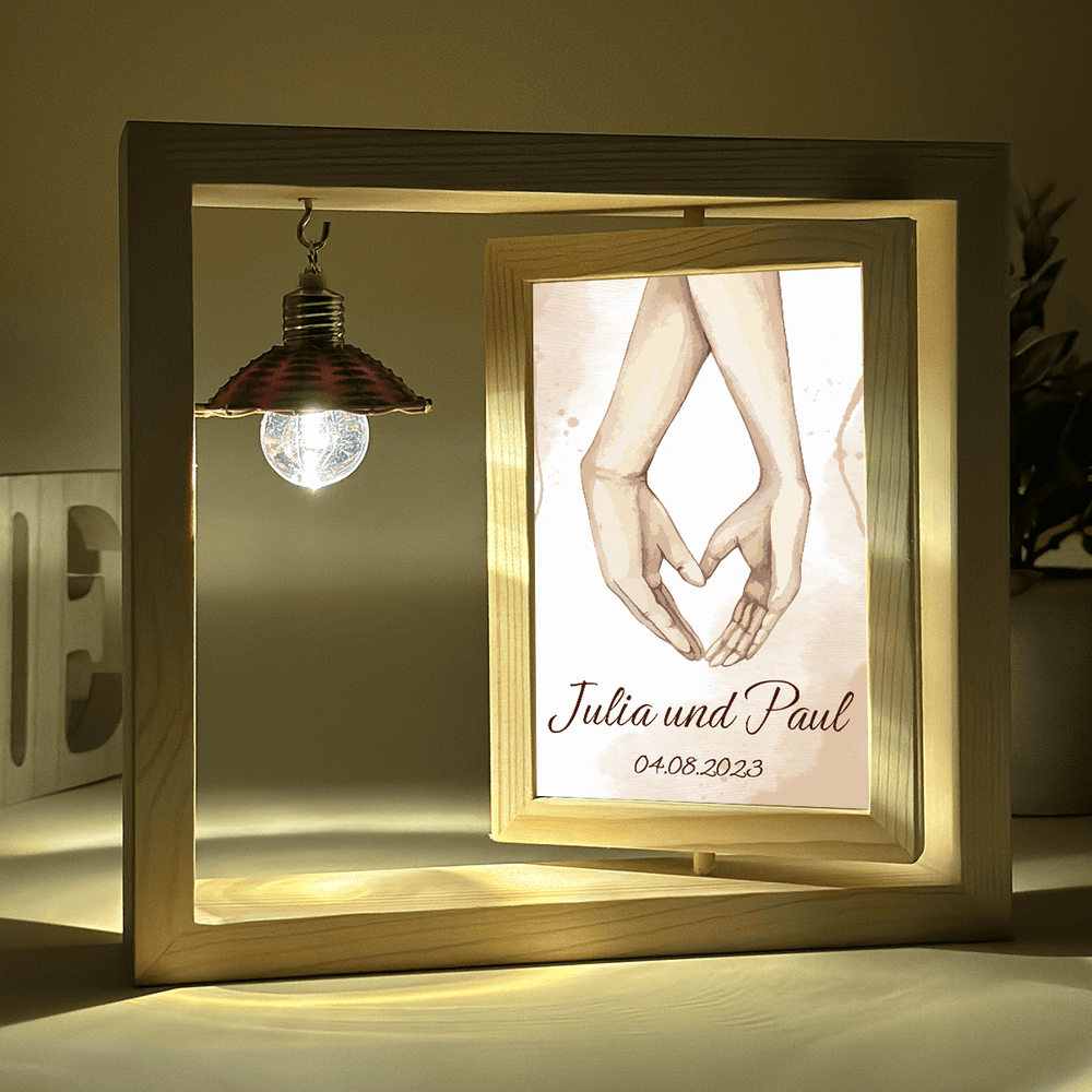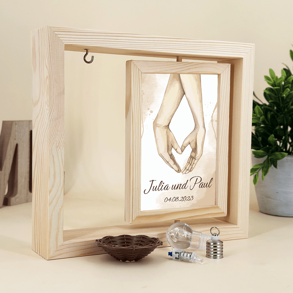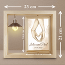 Hände + Namen - Druck auf Glas in Holzrahmen + led, personalisiertes Geschenk für ein Paar