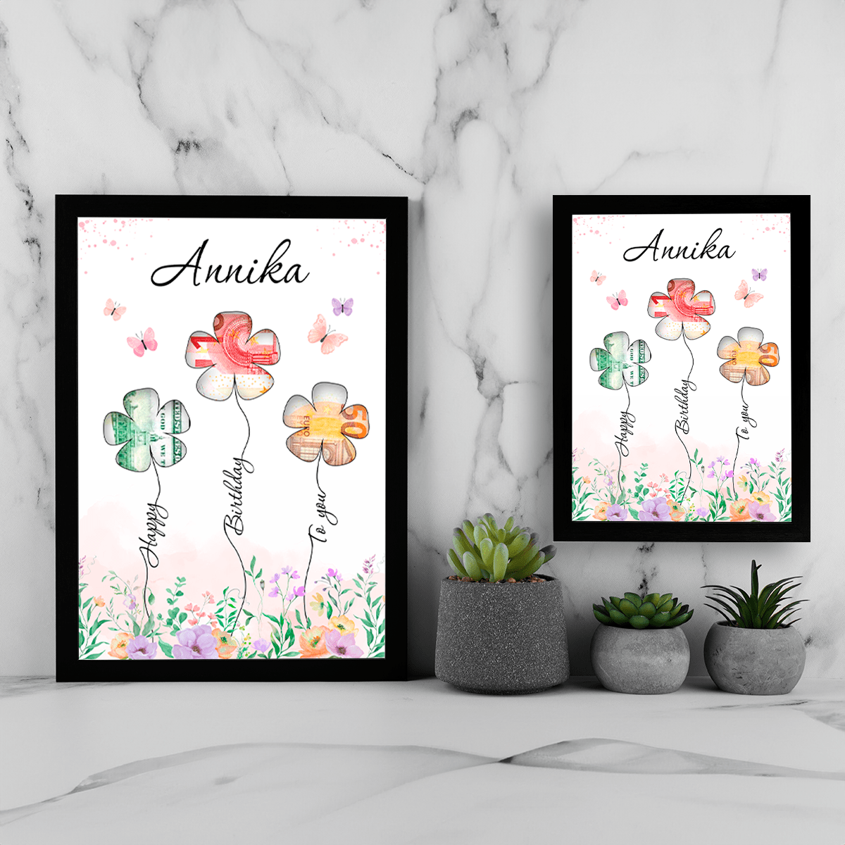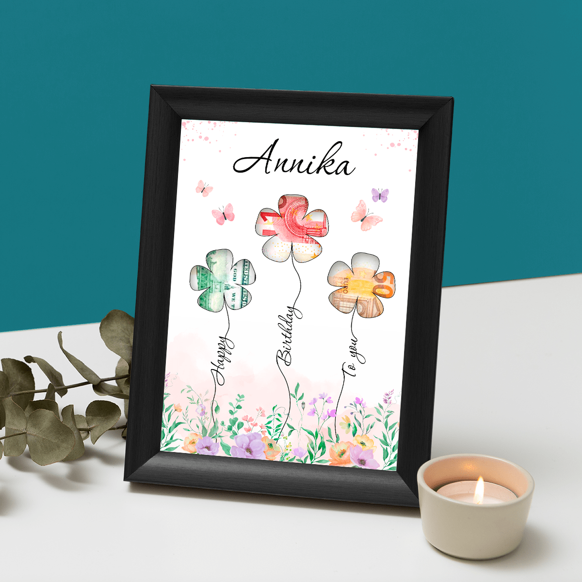 Happy Birthday - Geldrahmen, personalisiertes Geschenk für Frau