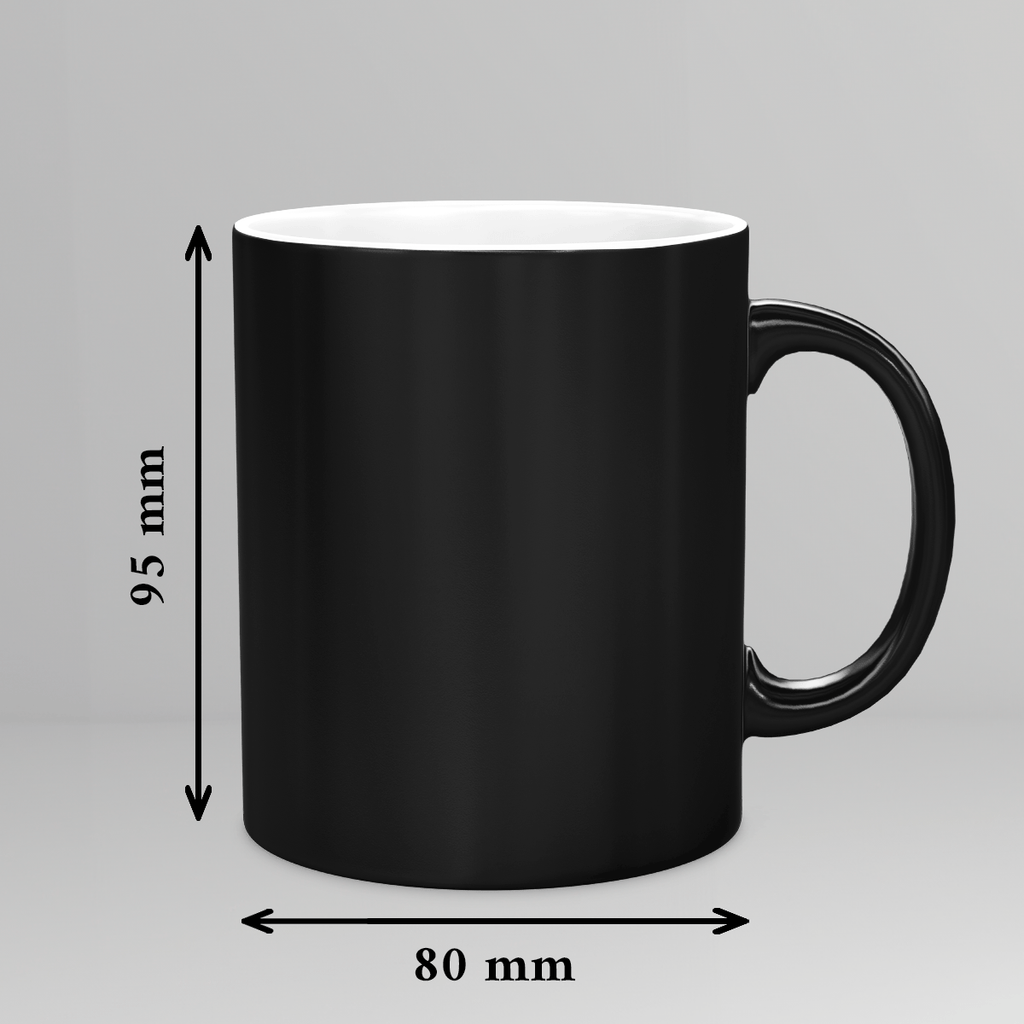 Ein schwarzer, scheinbar unauffälliger Becher wird Ihren täglichen Kaffee oder Tee mit ein wenig Magie noch besser schmecken lassen. Füllen Sie die Tasse einfach mit einem heißen Getränk und Sie werden eine Grafik, ein Foto oder eine Aufschrift sehen, die darunter versteckt ist!