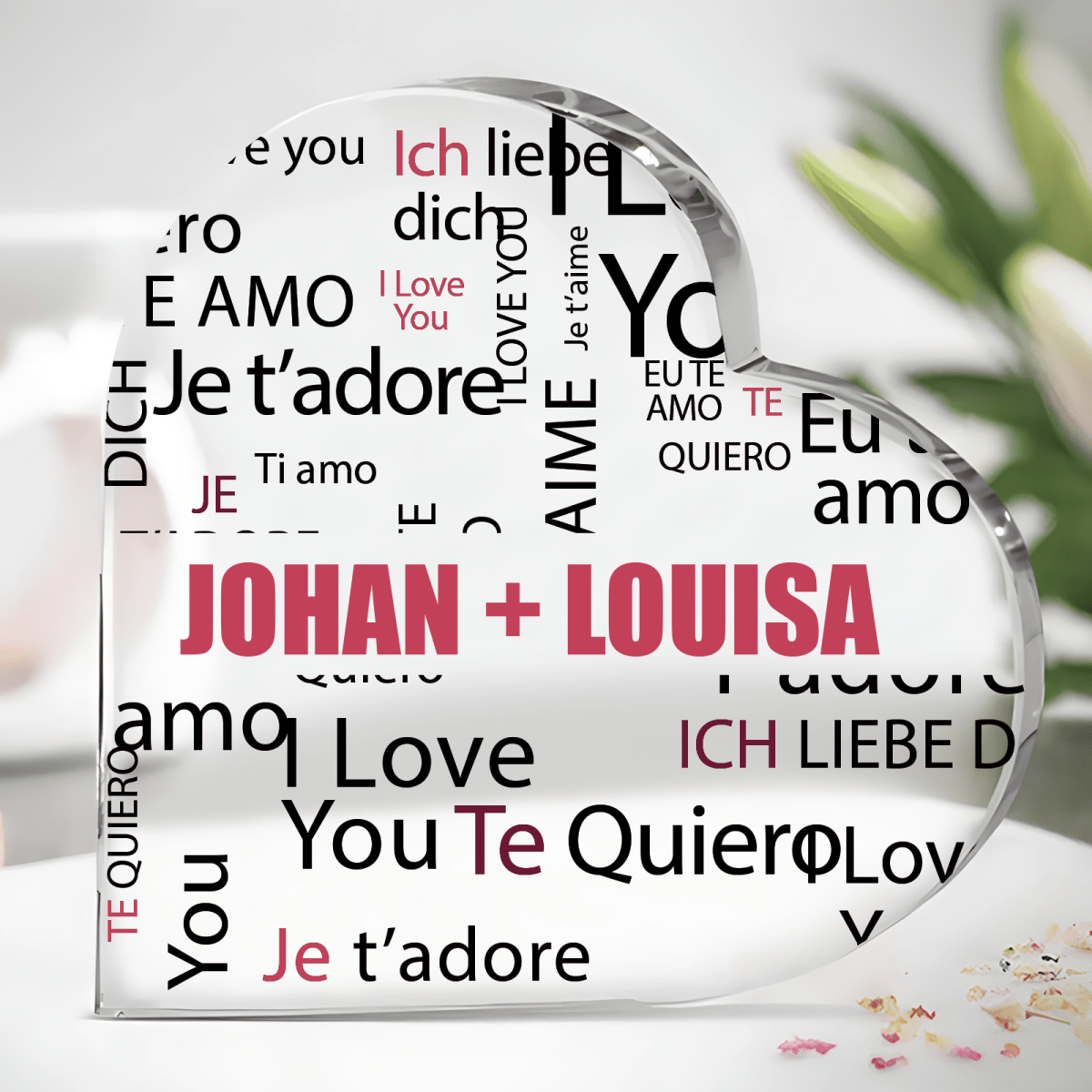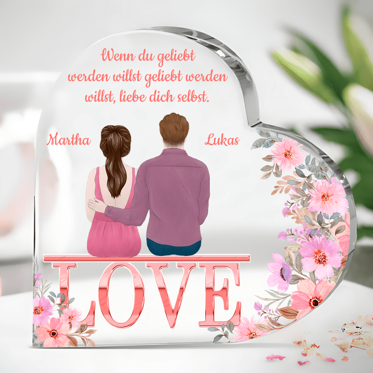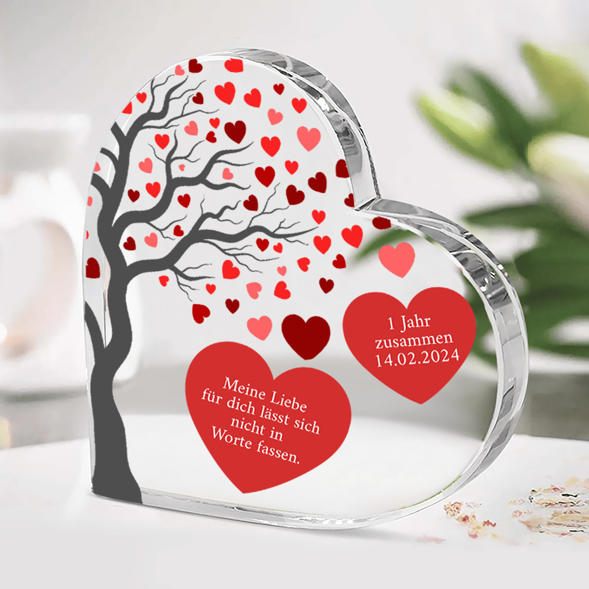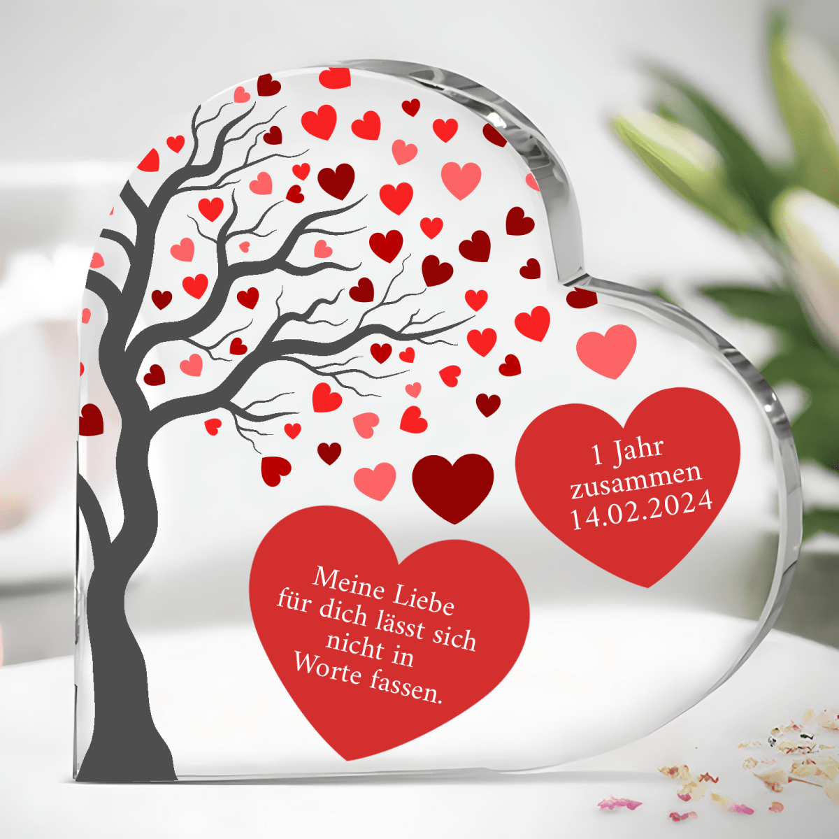 Herz aus Glas, personalisiertes Geschenk für Freundin, Freund, Verlobte, Verlobter, Geschenk zum Jahrestag, Valentinstag, originelles Geschenk
