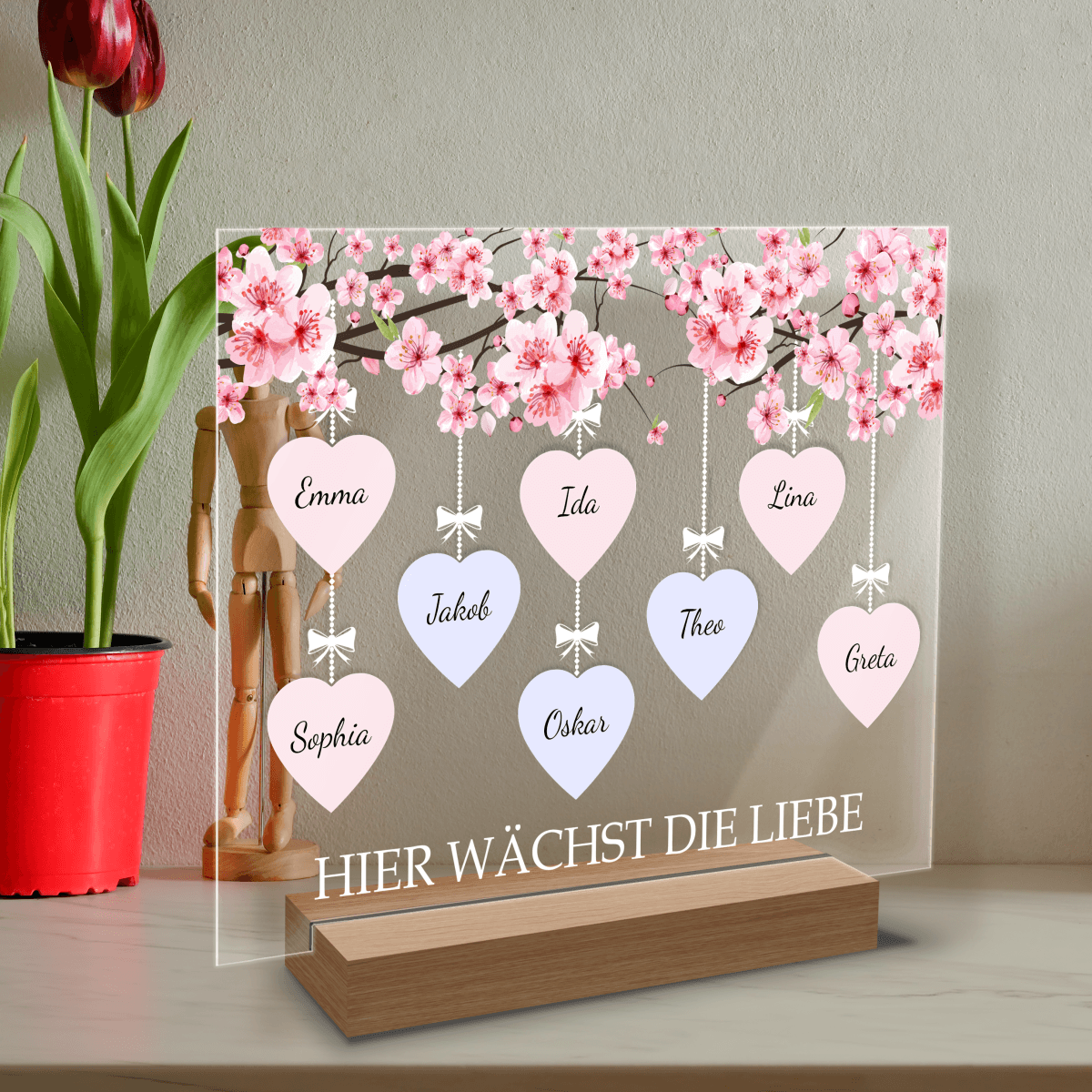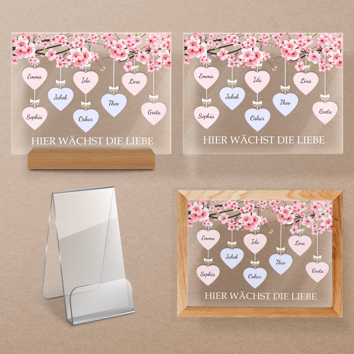 Hier wächst die Liebe - Druck auf Glas, personalisiertes Geschenk