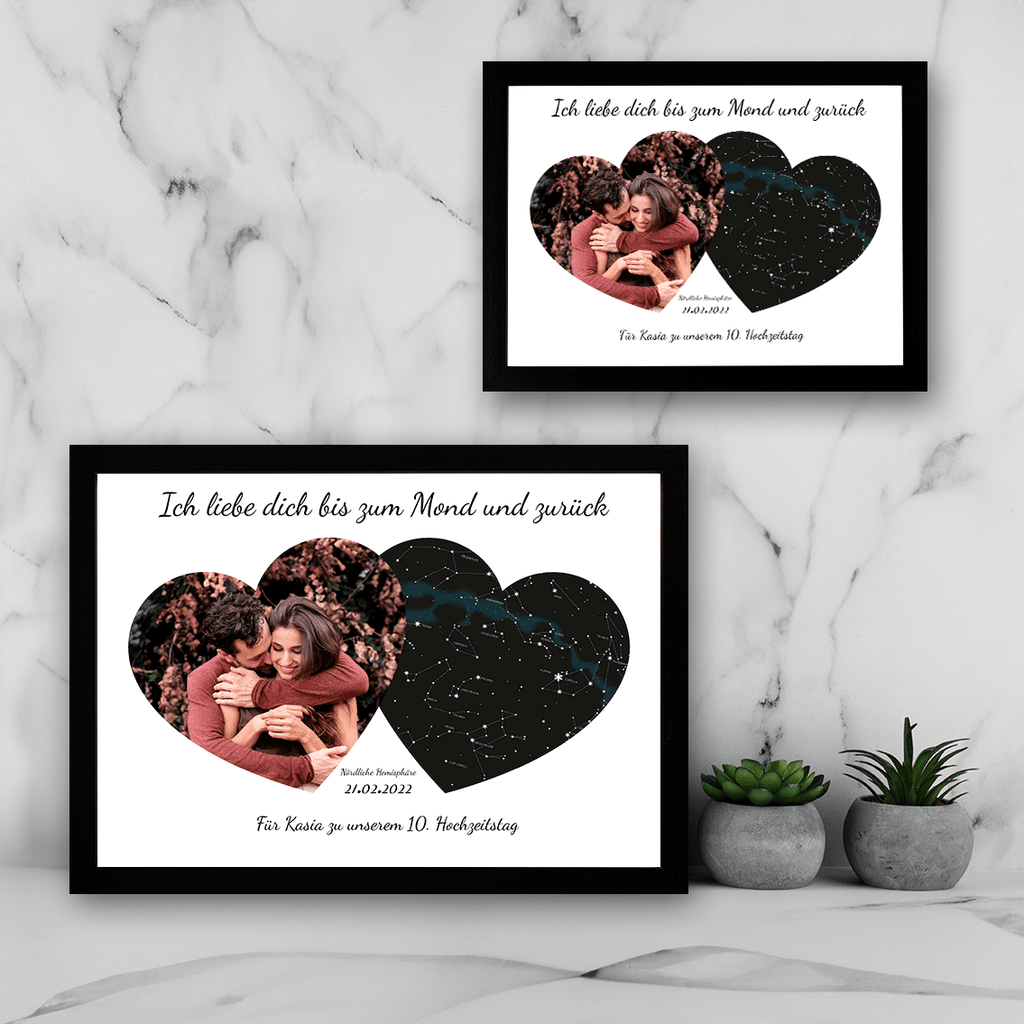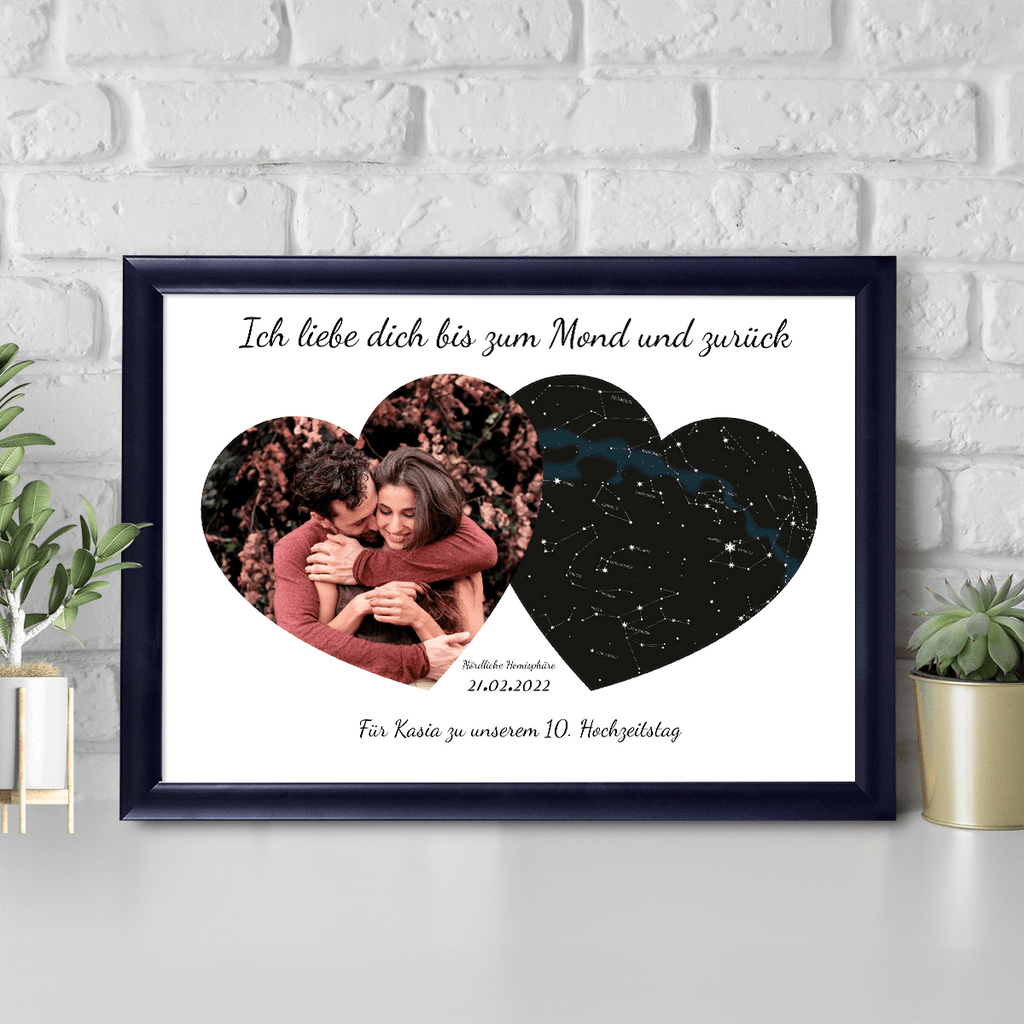 Himmelskarte mit Fotografie - Druck auf Glas, personalisiertes Geschenk