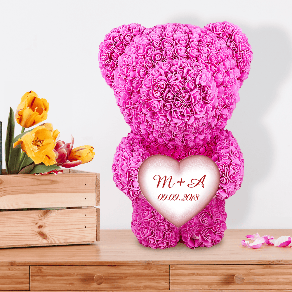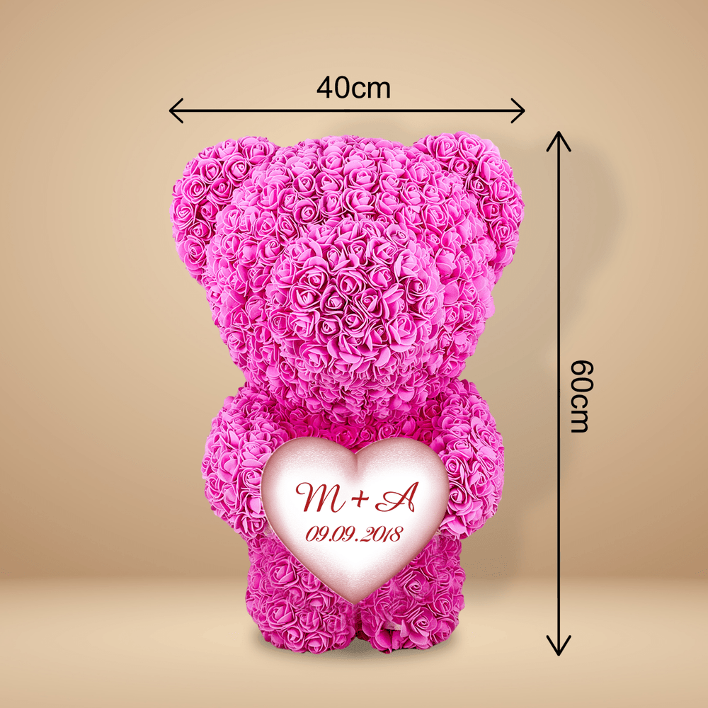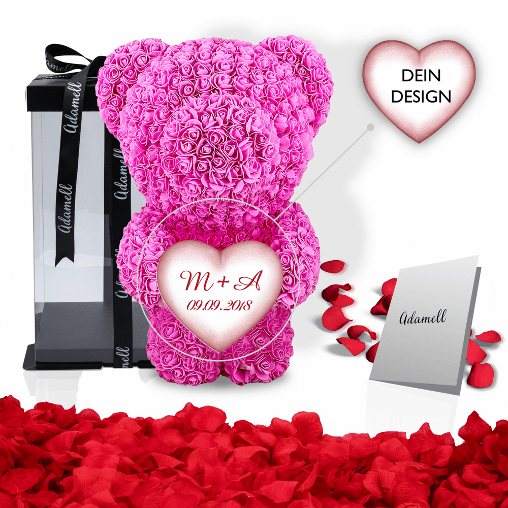 Der Teddy ist aus über 300 Schaumrosen 3D handgefertigt. Die Rosen bestehen aus einem weichen, angenehmen und hypoallergenen Material. Es ist wiederständigfähig und bleibt für viele Jahre. Die Blüten siehen natürlich aus, und haben keine Angst vor starken Umarmungen.