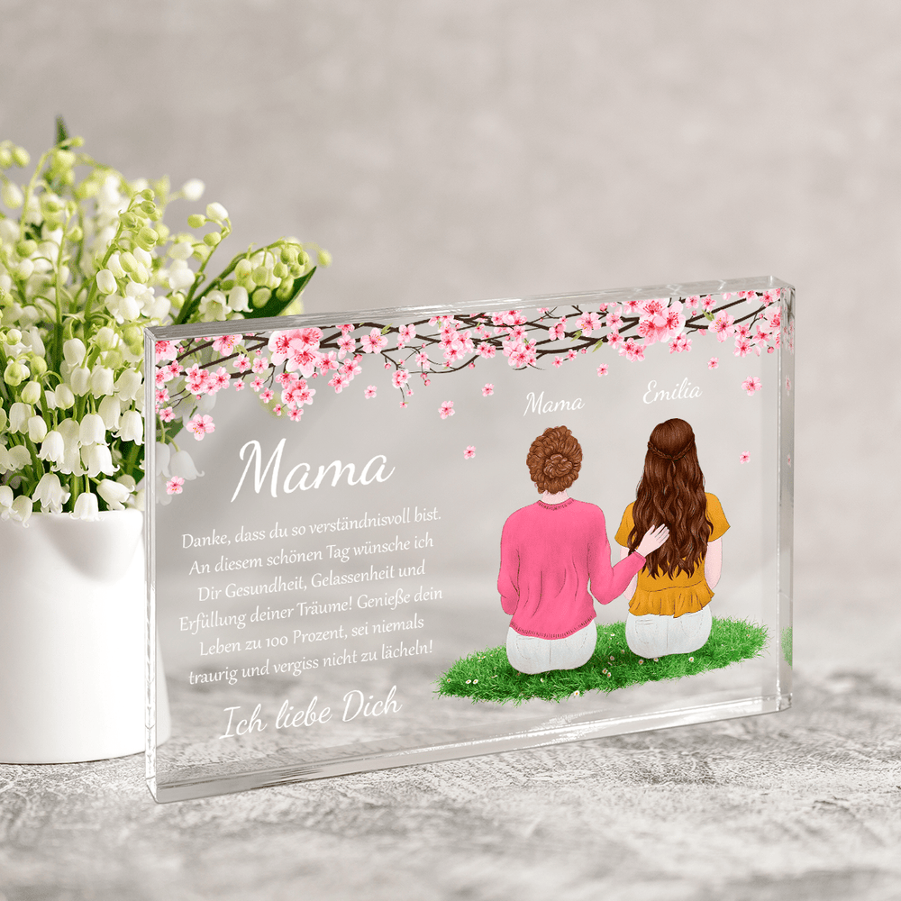 Inschrift + Bild in Blumen - Druck auf Glas, personalisiertes Geschenk für Mama