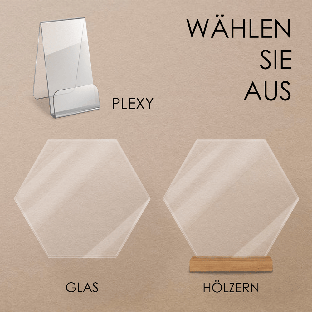 Wir drucken auf Acrylglas (Plexiglas) mit einer Dicke von 2 mm, das sicherer und langlebiger ist als gewöhnliches Glas.