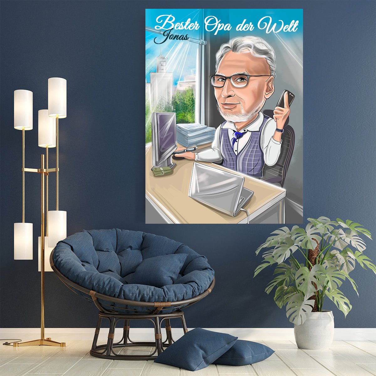 Karikatur des Opas - Druck auf Leinwand, personalisiertes Geschenk für Opa