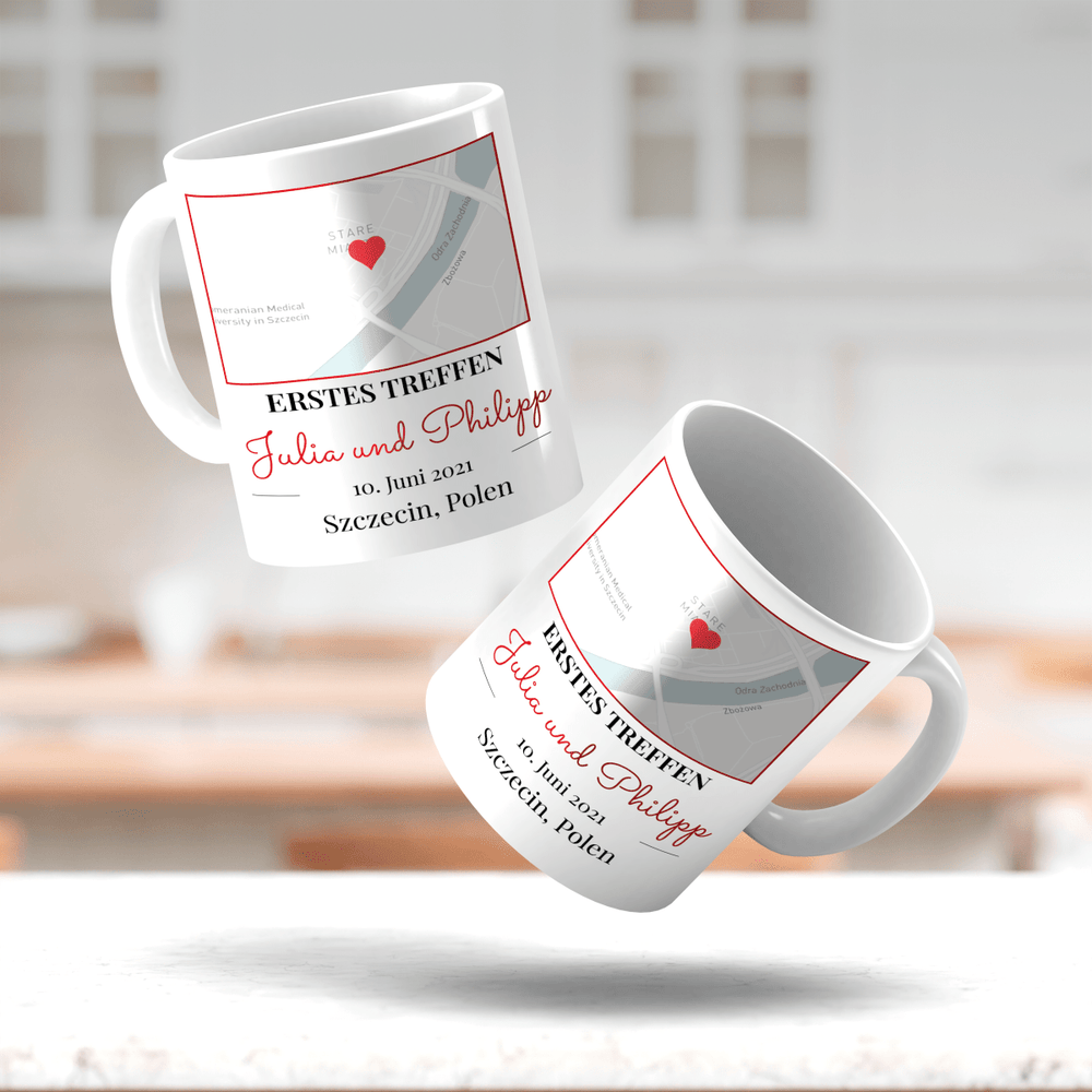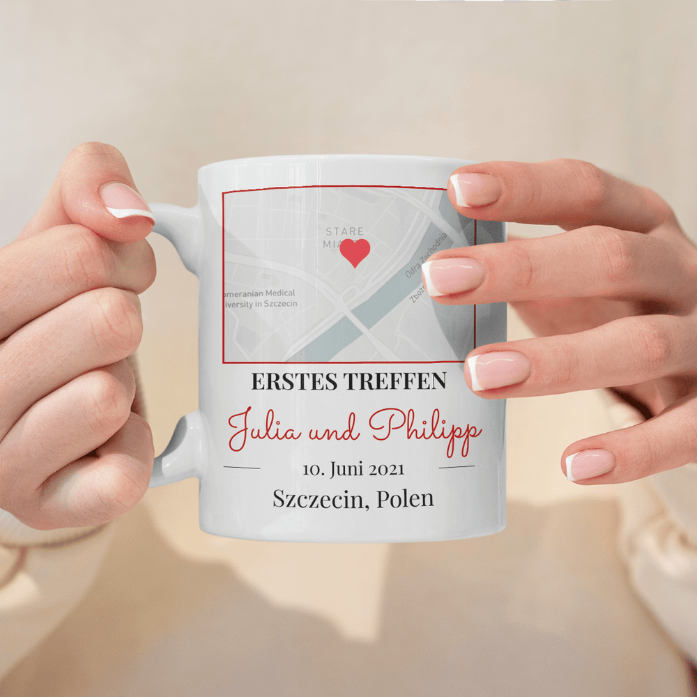 Karte des ersten Treffens - 1x bedruckte Tasse, personalisiertes Geschenk für ein Paar