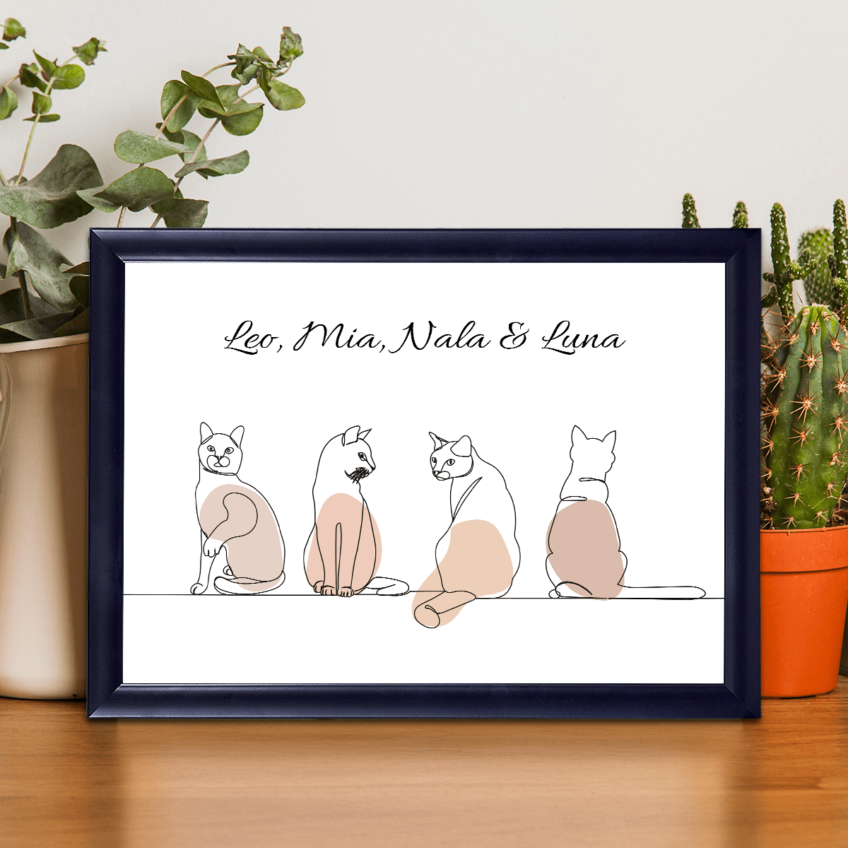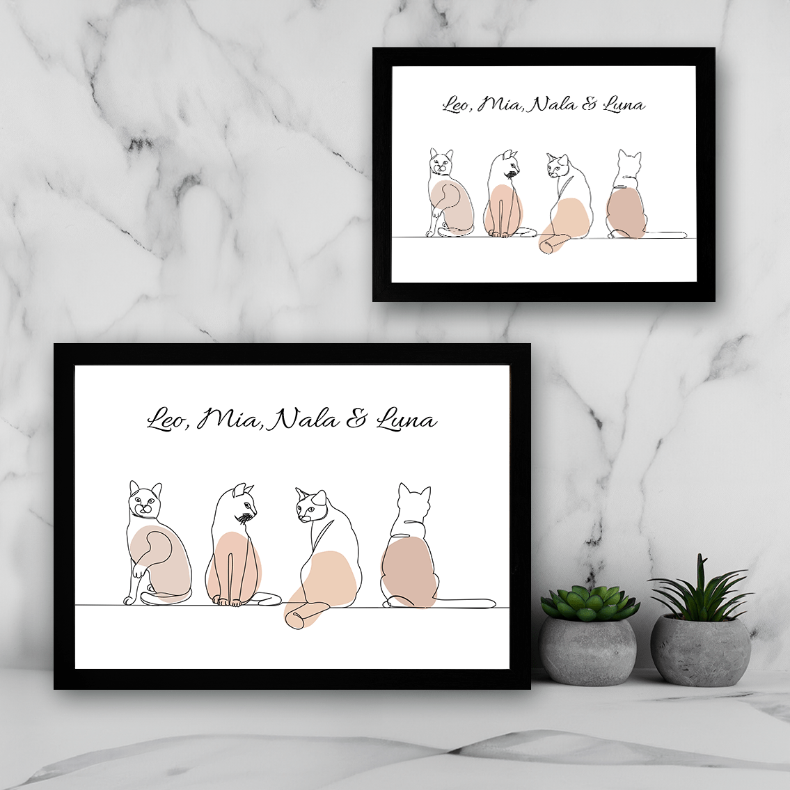Katzen Grafiken + Namen - Druck auf Glas, personalisiertes Geschenk für Katzenliebhaber