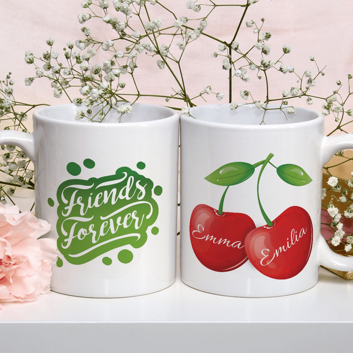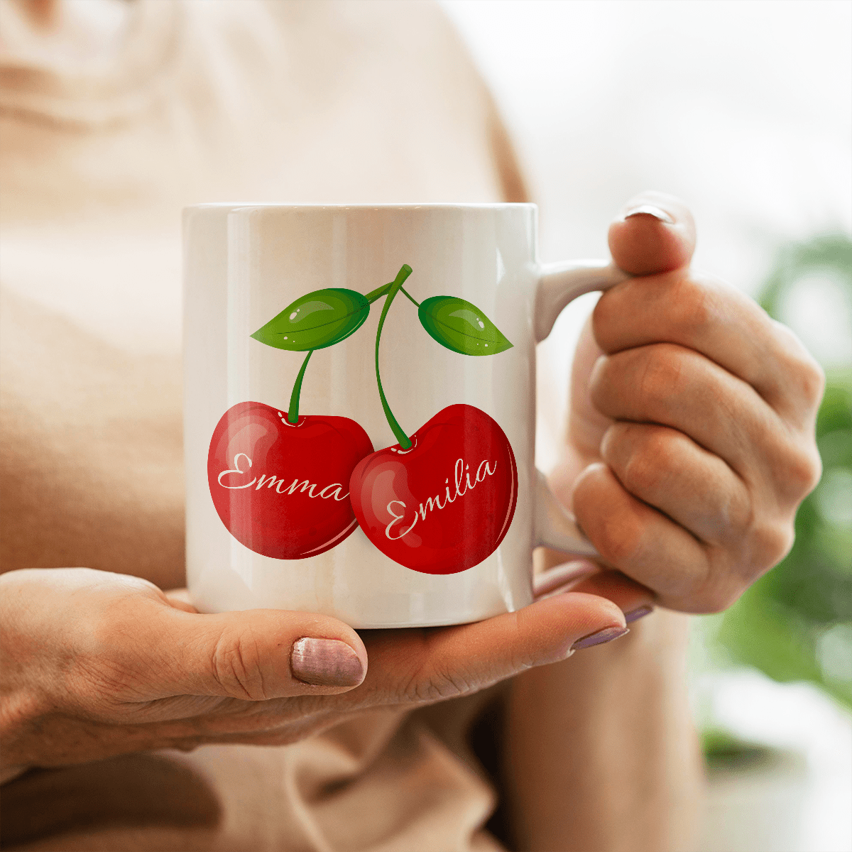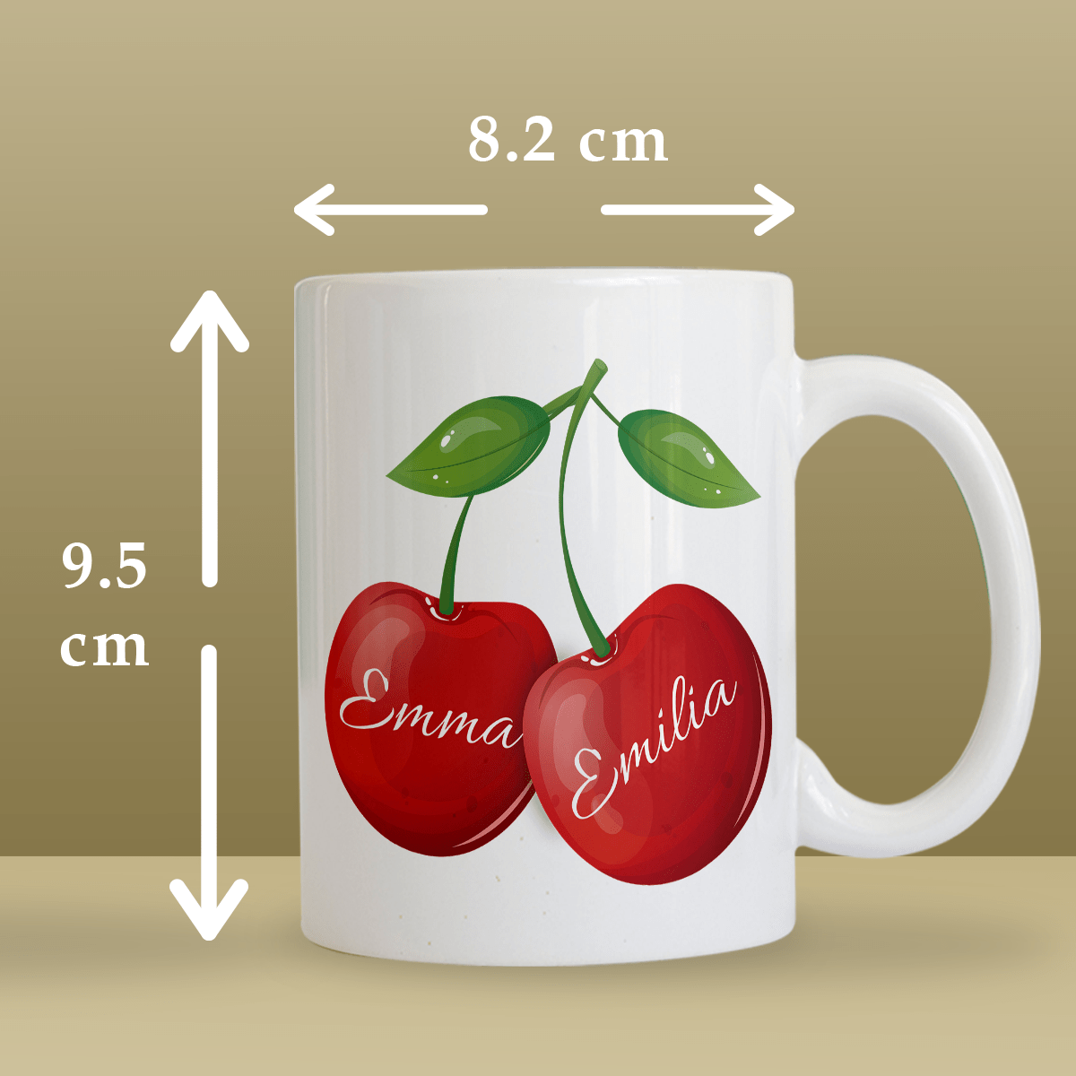 Kirschen Grafik + Namen - 1x Bedruckte Tasse, personalisiertes Geschenk für Freundin