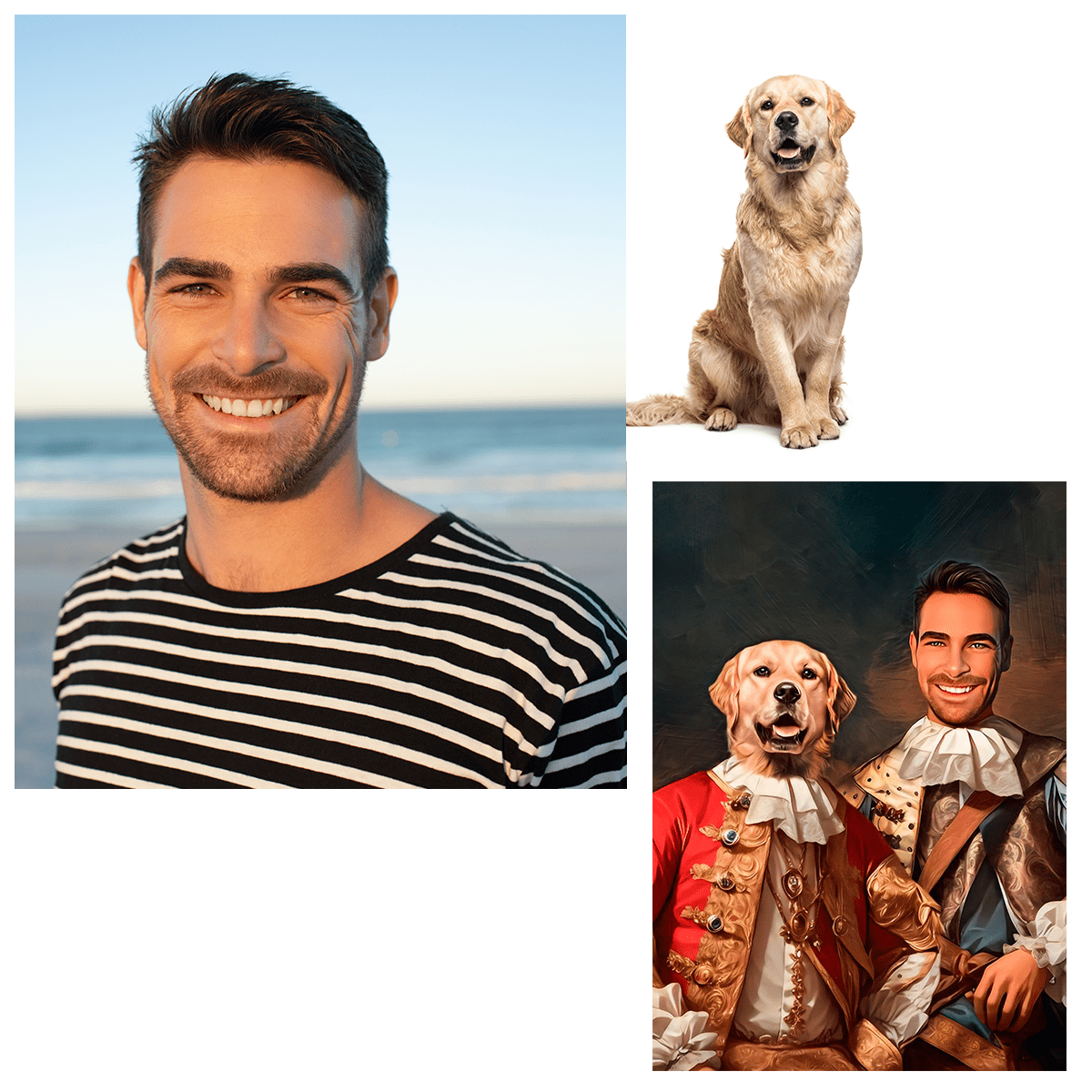 Das hochgeladene Foto wird in ein historisches Porträt umgewandelt. Die Vorschaubilder auf der Seite zeigen den grafischen Effekt, der erzielt werden kann.