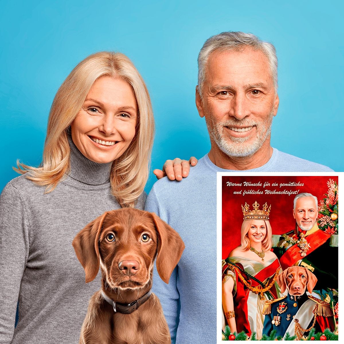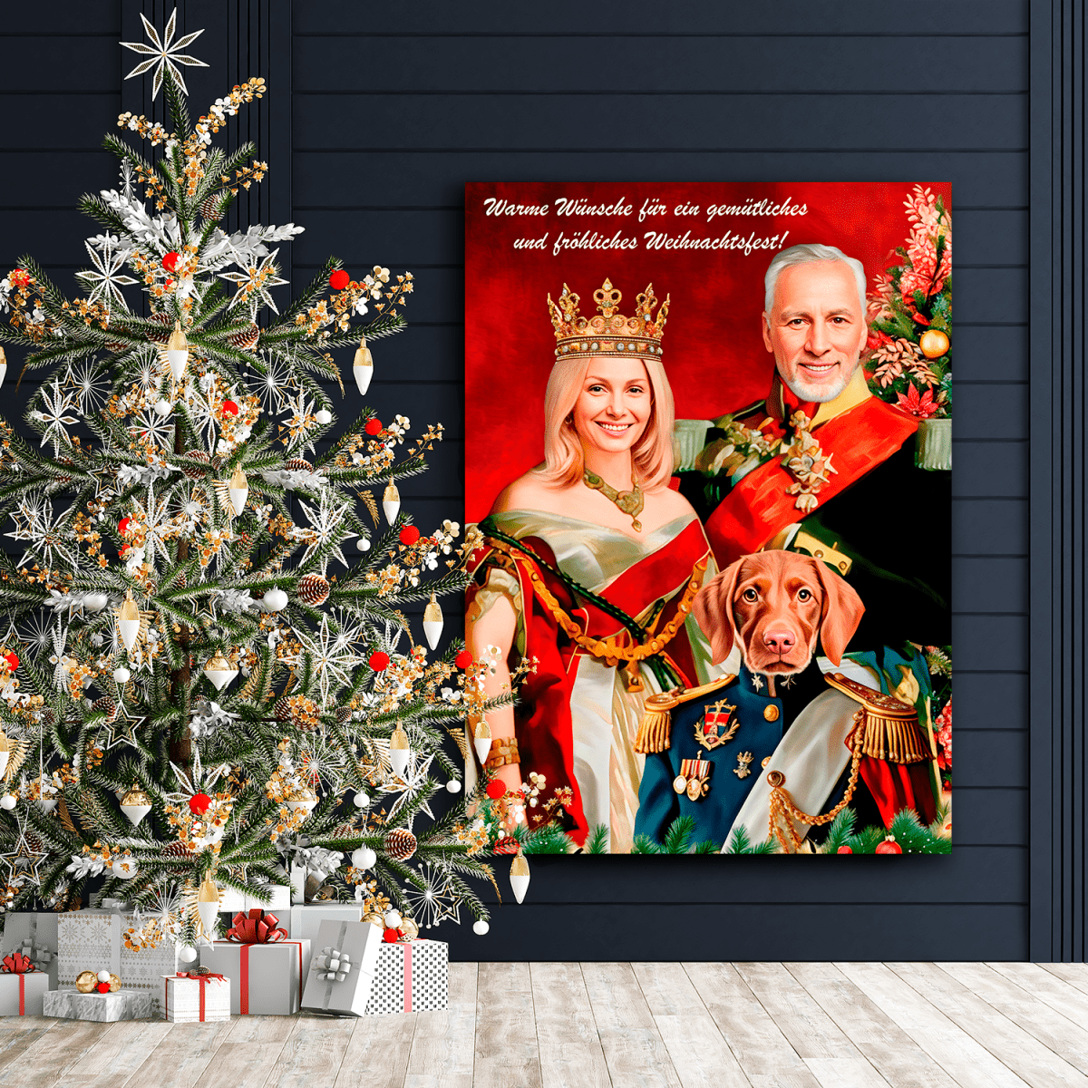 Königspaar mit seinem Hund - Druck auf Leinwand, personalisiertes Geschenk für Paar