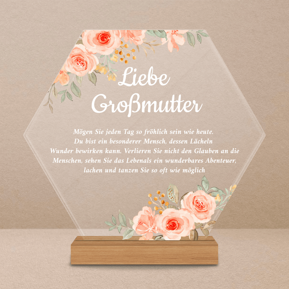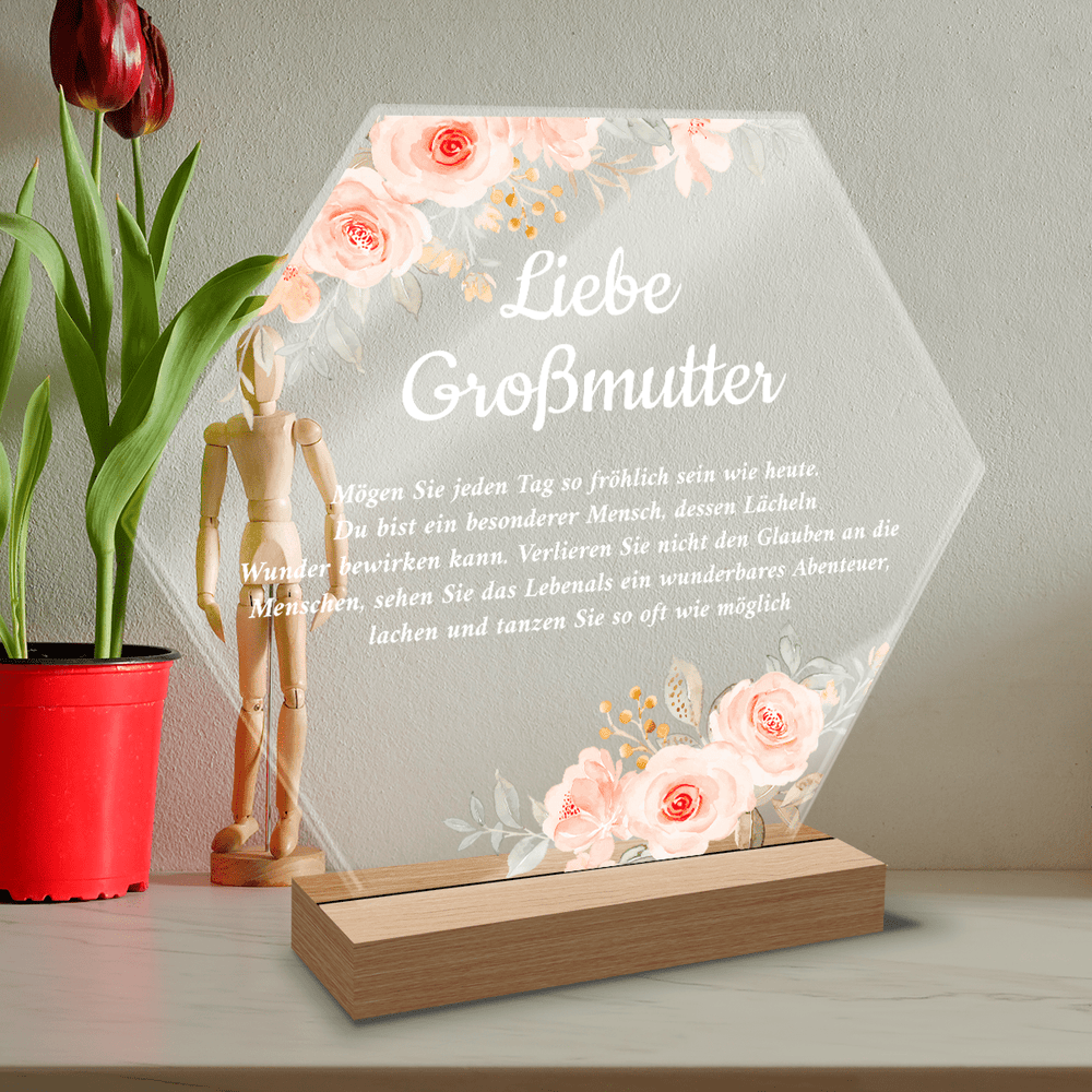 Liebe Großmutter Text - Druck auf Glas, personalisiertes Geschenk für Oma