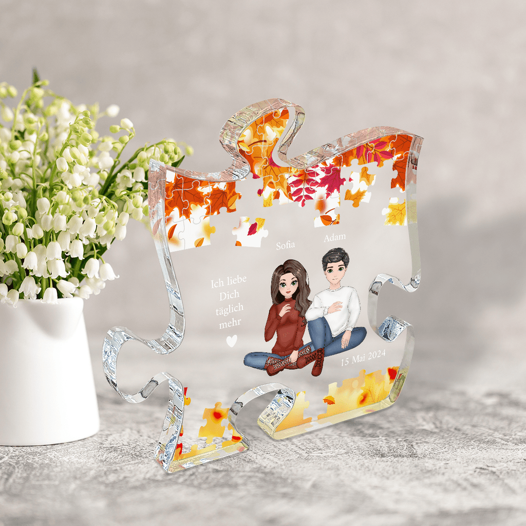 Druck auf Glas, Acrylpuzzle, personalisiertes Geschenk für Paar, Frau, Mann, Geschenk zum Hochzeitstag, Jahrestag, Valentinstag, Geschenkidee für Frau