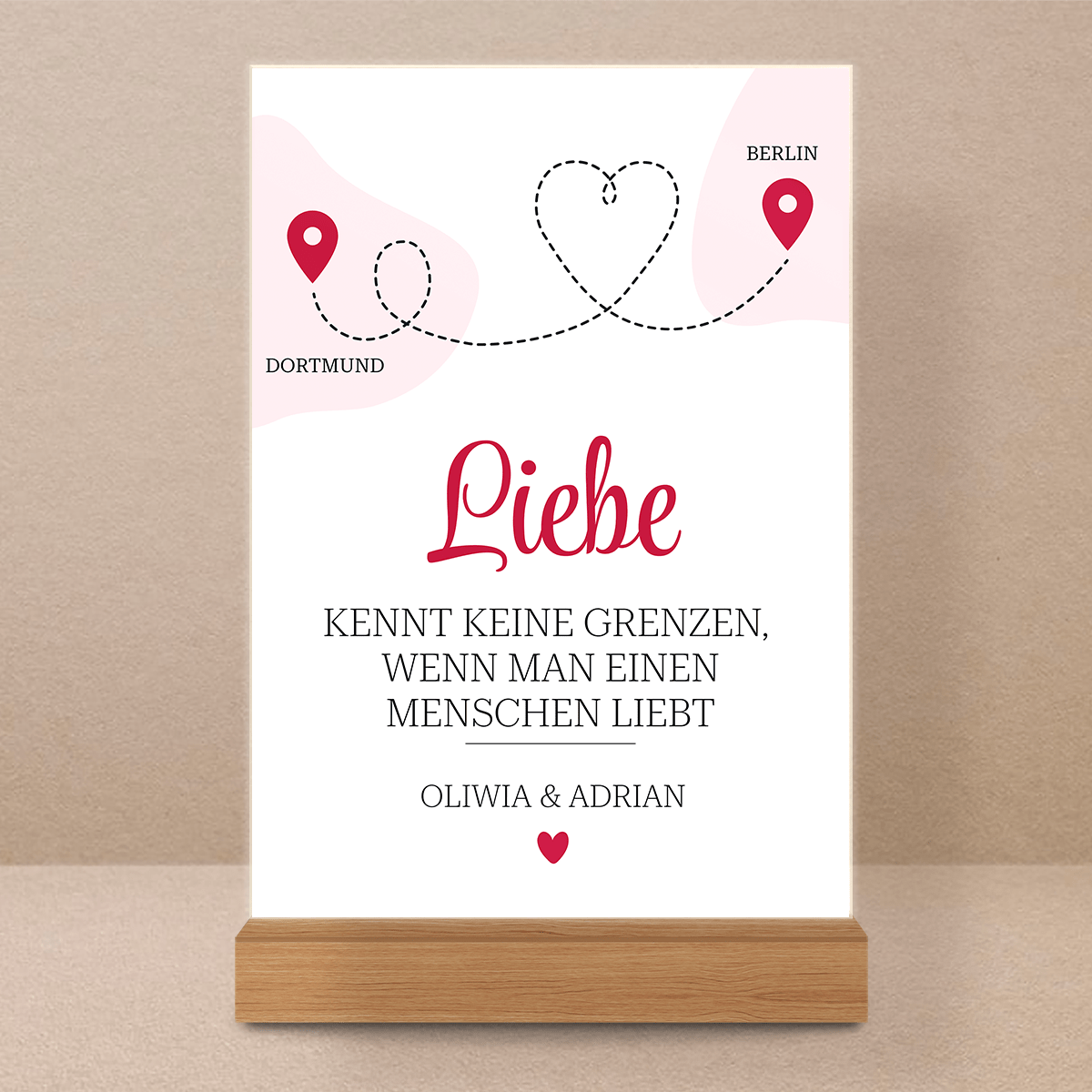 Liebe kennt keine Grenzen - Druck auf Glas, personalisiertes Geschenk für sie, ihn
