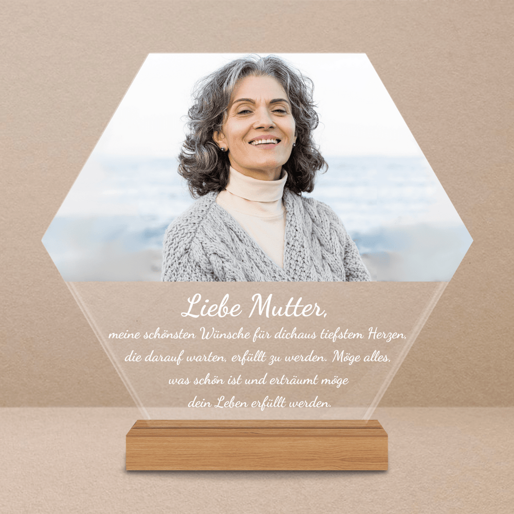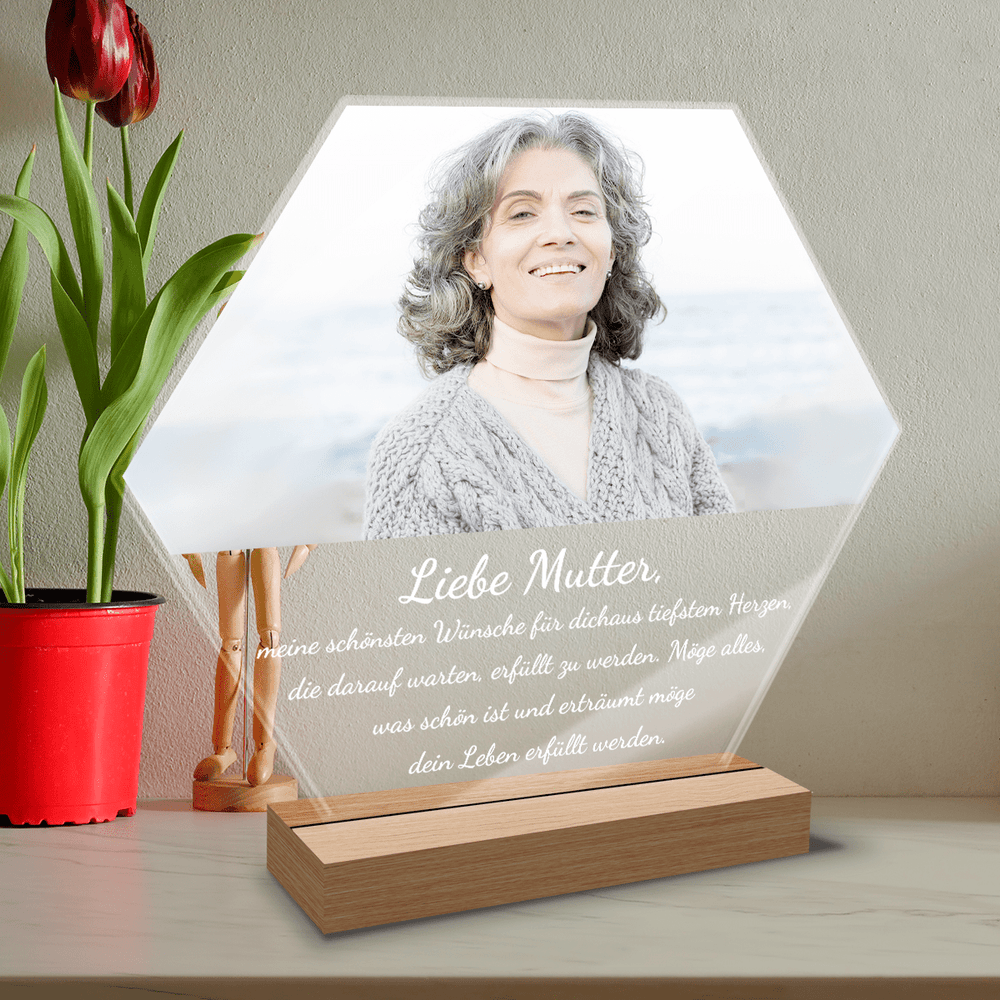 Liebe Mama Wünsche + Foto - Druck auf Glas, personalisiertes Geschenk für Mama