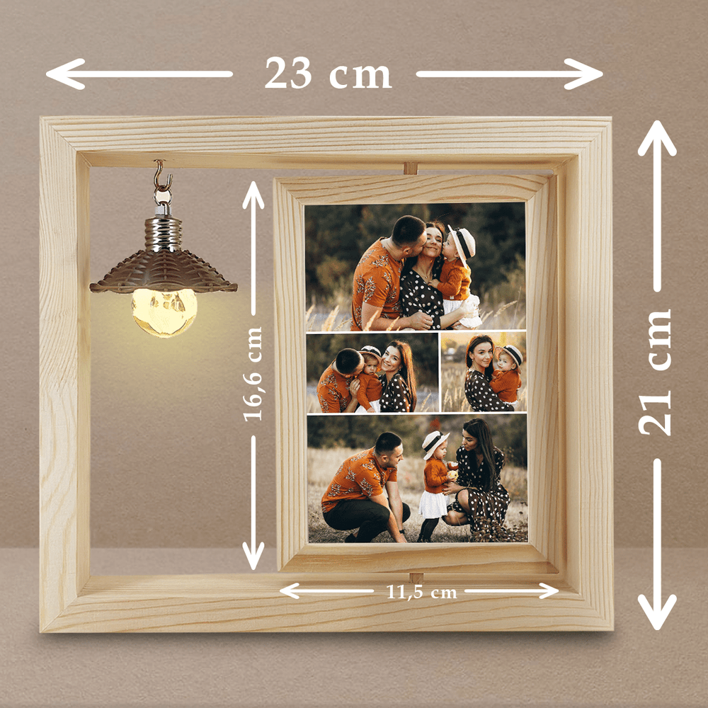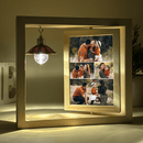 Der Ausdruck wird außerdem mit einem Rahmen aus hochwertigem Holz geliefert. Er ermöglicht es Ihnen, das Glas auf bequeme Weise zu positionieren, da er mit einem beweglichen, drehbaren Element ausgestattet ist. Ein weiterer Vorteil ist die LED-Birne, die den Druck mit warmem Licht beleuchtet und so zu einer originellen Lampe wird.