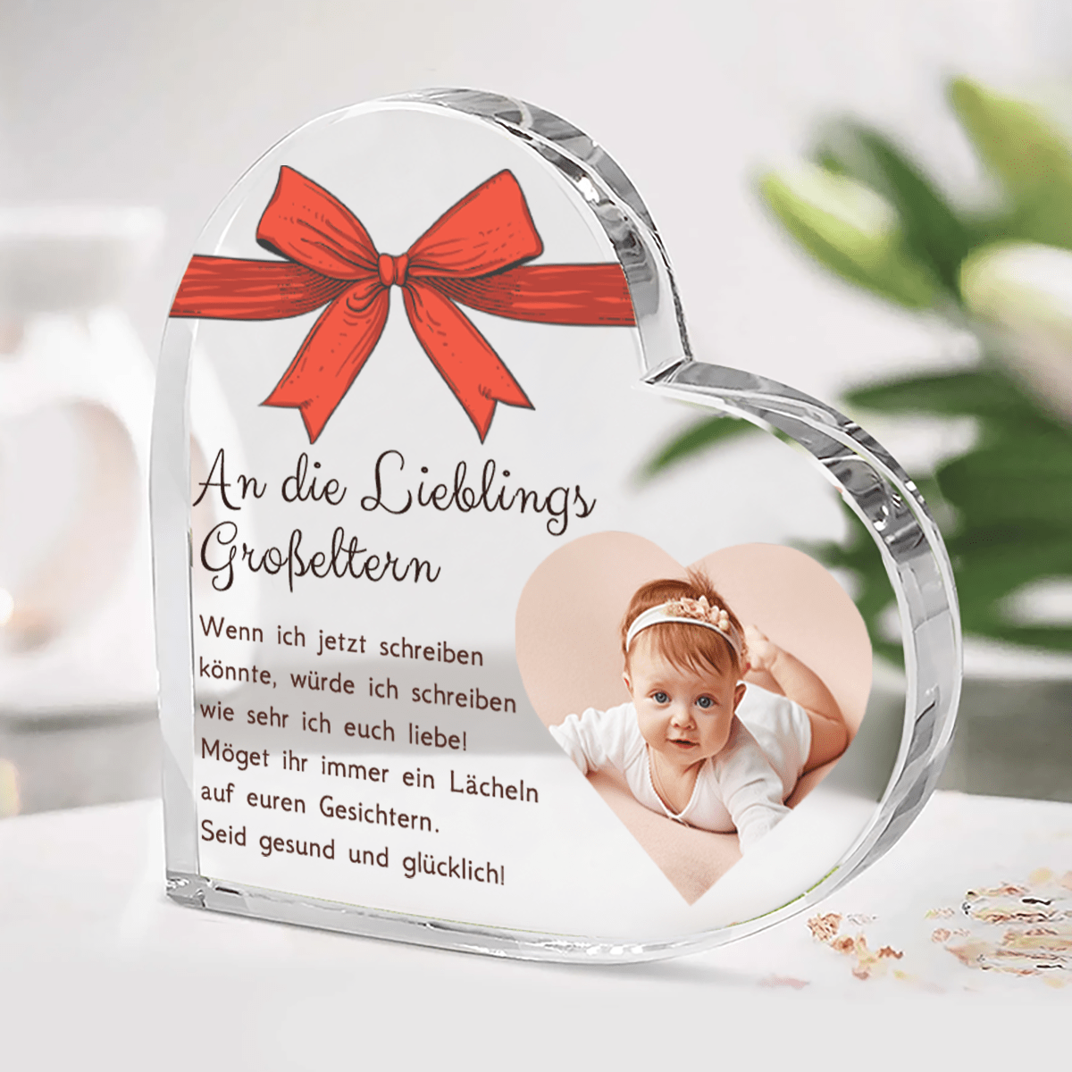 Herz aus Glas, personalisiertes Geschenk für Großeltern, Geschenk zum Großelterntag, Geburtstag, Geschenkidee für Großeltern, originelles Geschenk