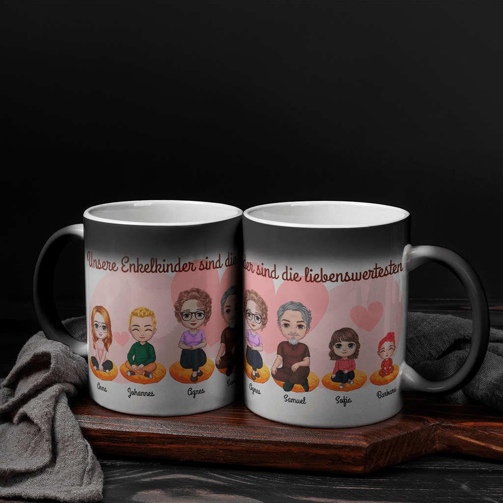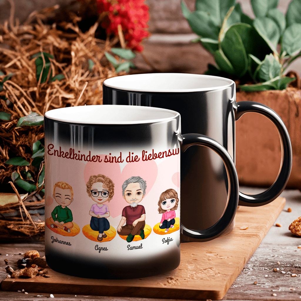 Ein schwarzer, scheinbar unauffälliger Becher wird Ihren täglichen Kaffee oder Tee mit ein wenig Magie noch besser schmecken lassen. Füllen Sie die Tasse einfach mit einem heißen Getränk und Sie werden eine Grafik, ein Foto oder eine Aufschrift sehen, die darunter versteckt ist!