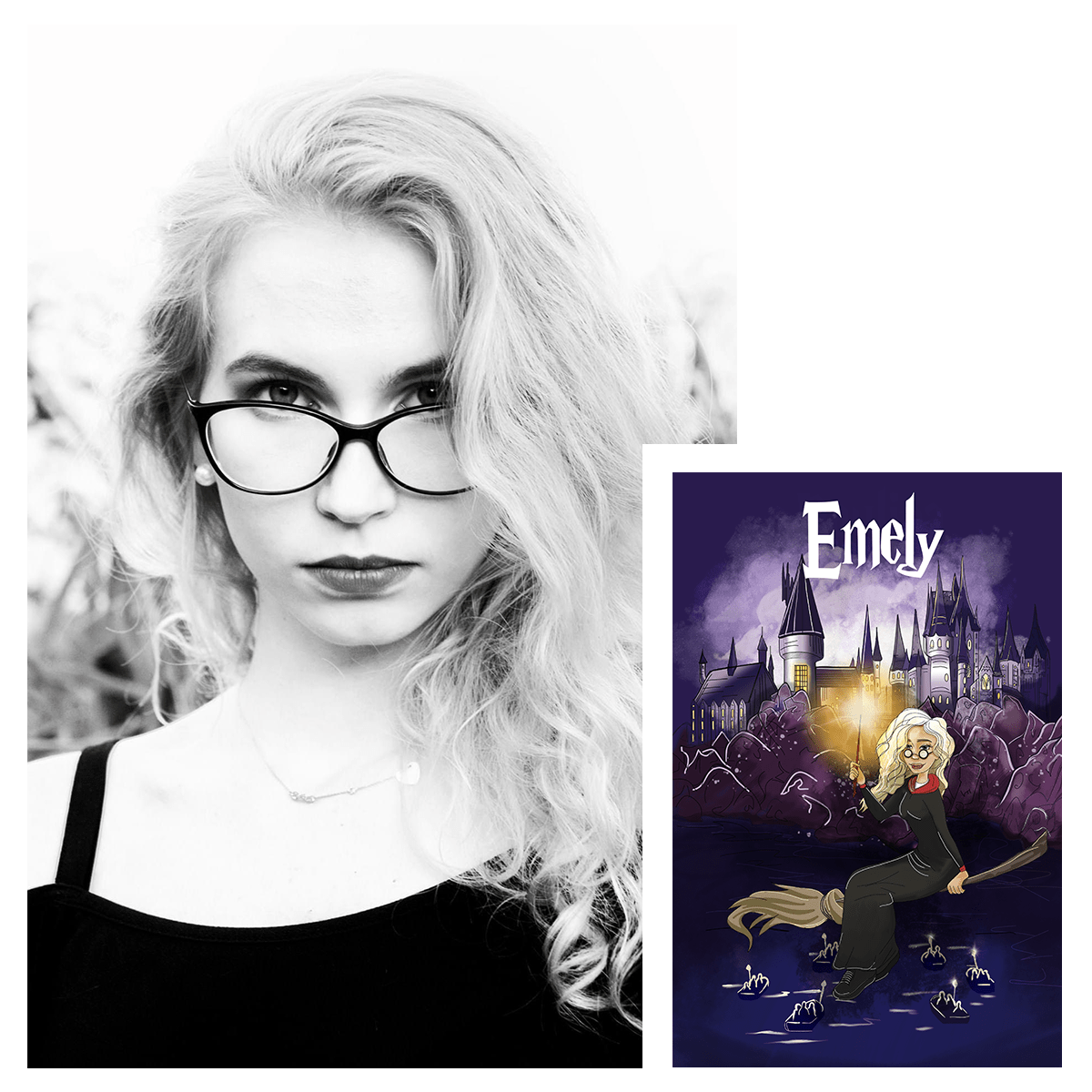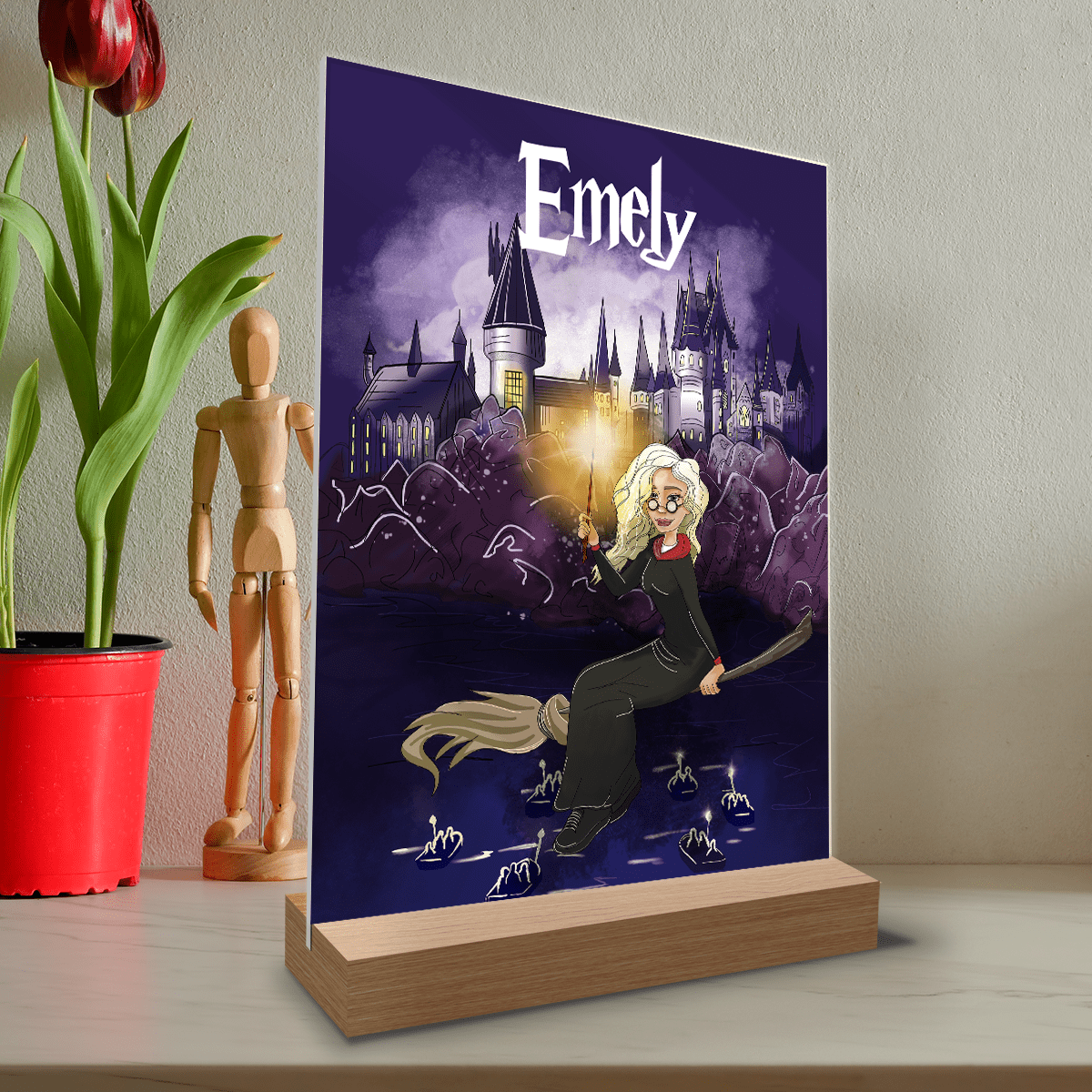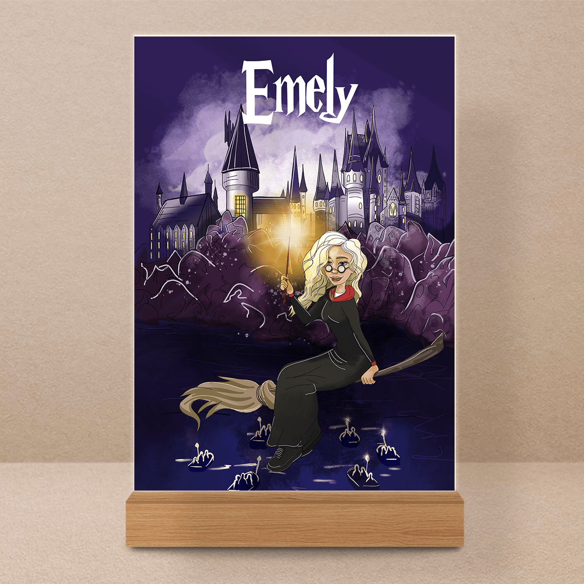 Magierin Grafik + Name - Druck auf Glas, personalisiertes Geschenk für Frau