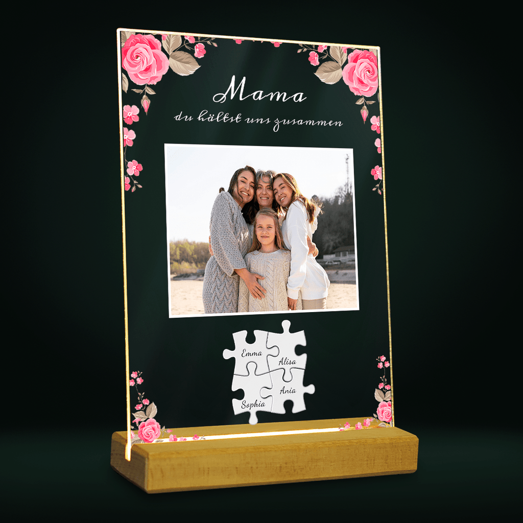 Mama, du hältst uns zusammen - Druck auf Glas, personalisiertes Geschenk