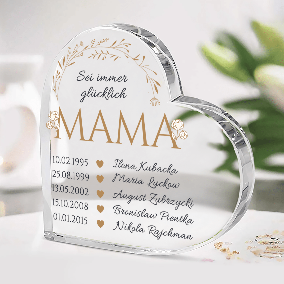 Mama, sei glücklich - Herz aus Glas, personalisiertes Geschenk für Mama