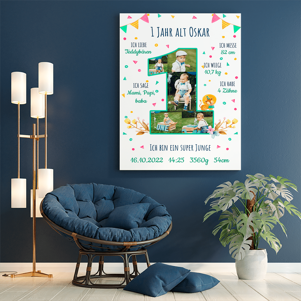 Druck auf Leinwand, personalisiertes Geschenk für Baby, Junge, Mädchen, ein Jahr altes Baby, Geburtstagsgeschenk für Baby, originelles Geschenk