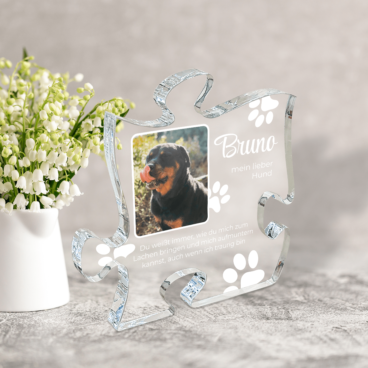 Druck auf Glas, Acrylpuzzle, personalisiertes Geschenk für Hundebesitzer, Geschenk zum Geburtstag, Weihnachten, originelles Geschenk, Geschenkidee