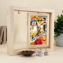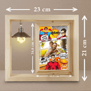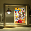 Der Ausdruck wird außerdem mit einem Rahmen aus hochwertigem Holz geliefert. Er ermöglicht es Ihnen, das Glas auf bequeme Weise zu positionieren, da er mit einem beweglichen, drehbaren Element ausgestattet ist. Ein weiterer Vorteil ist die LED-Birne, die den Druck mit warmem Licht beleuchtet und so zu einer originellen Lampe wird.