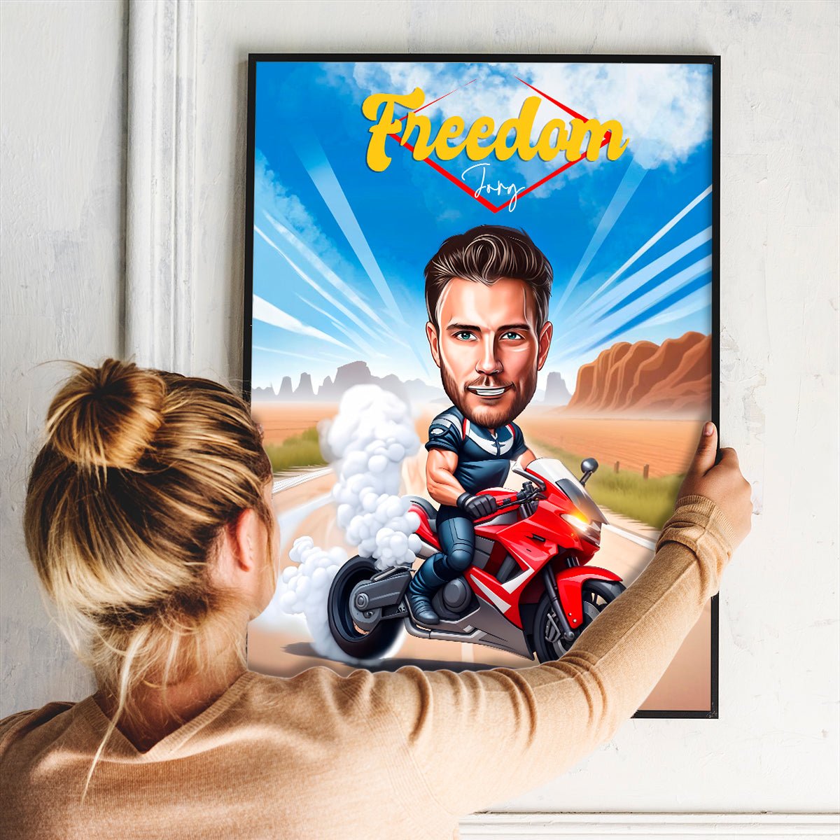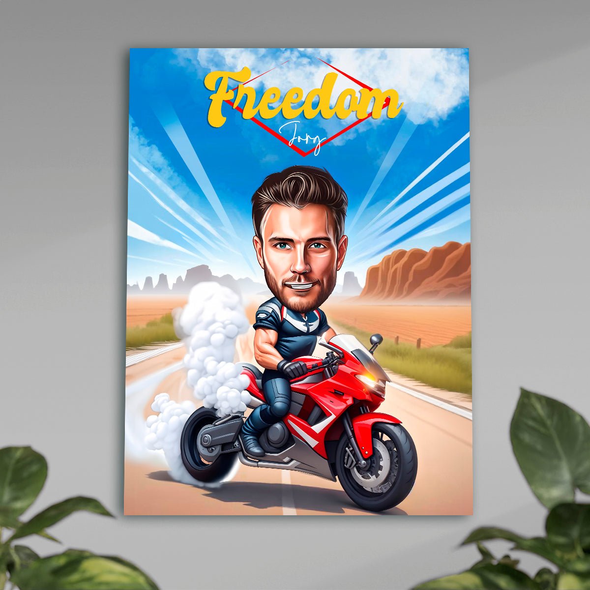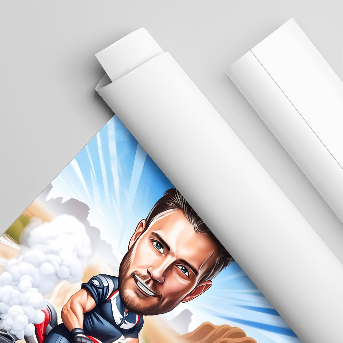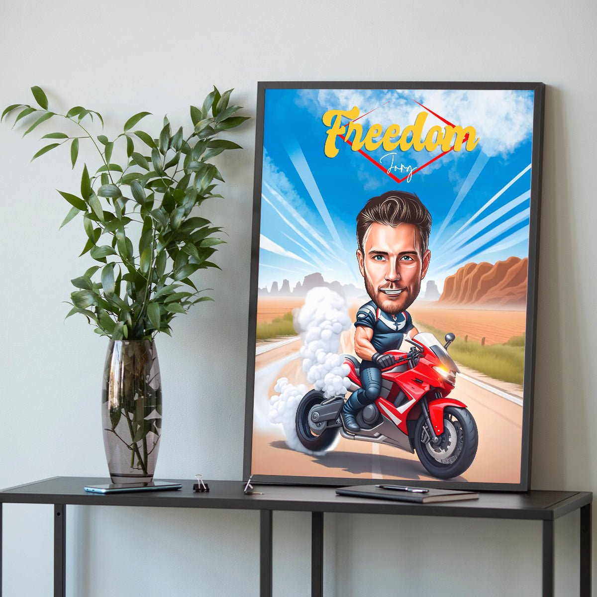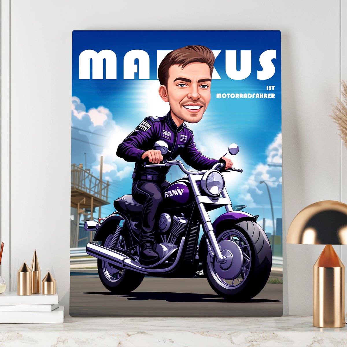 Motorradfahrer-Karikatur - Poster, personalisiertes Geschenk für Mann