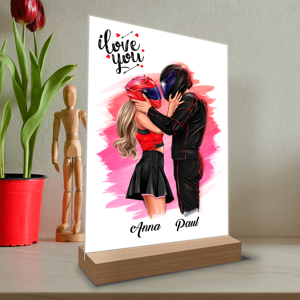 Motorradfahrerpaar - Druck auf Glas, personalisiertes Geschenk für ein Paar