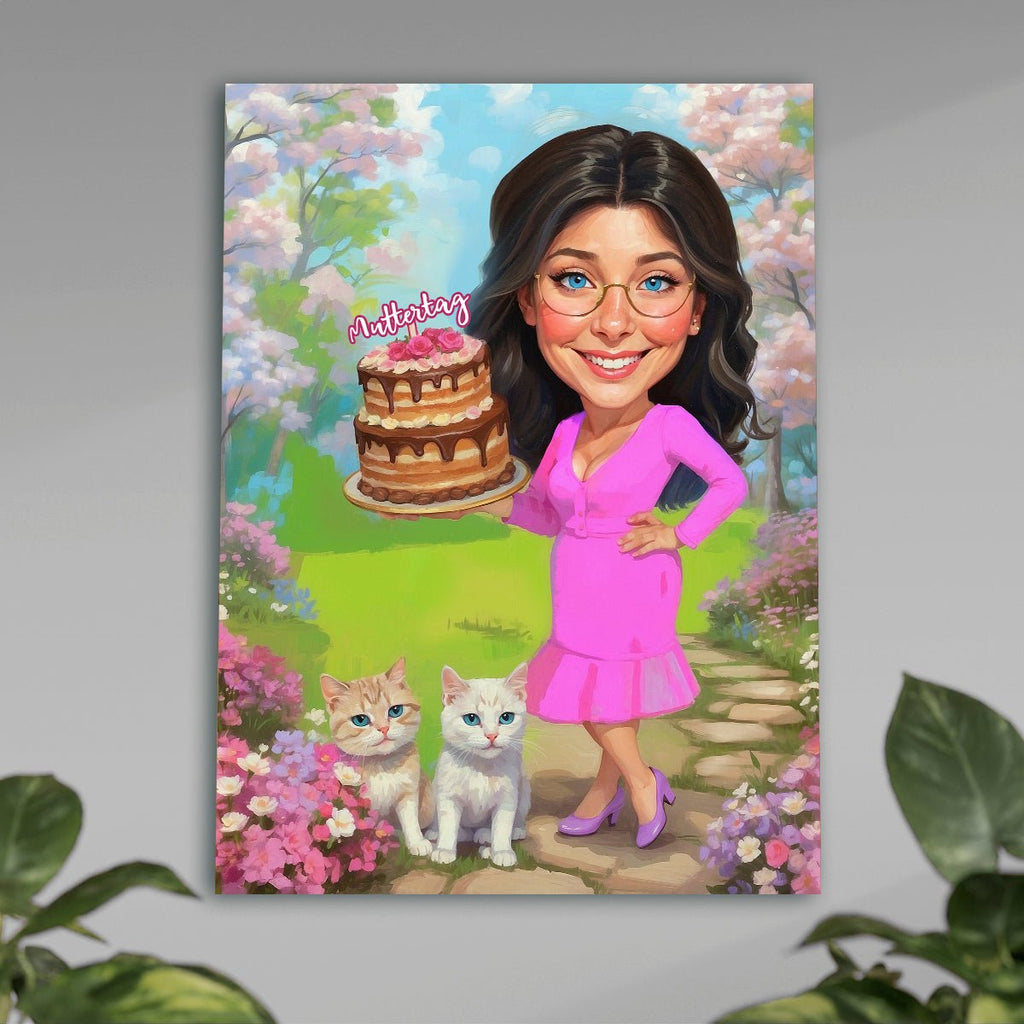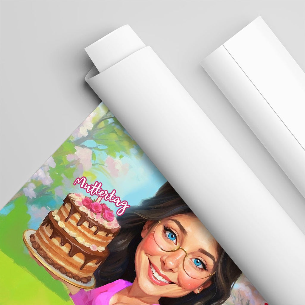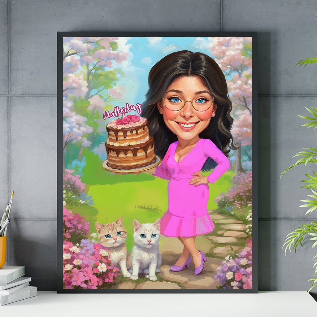 Mutter mit Torte Illustration - Poster, personalisiertes Geschenk für Mama