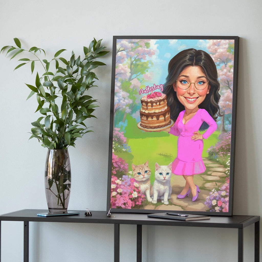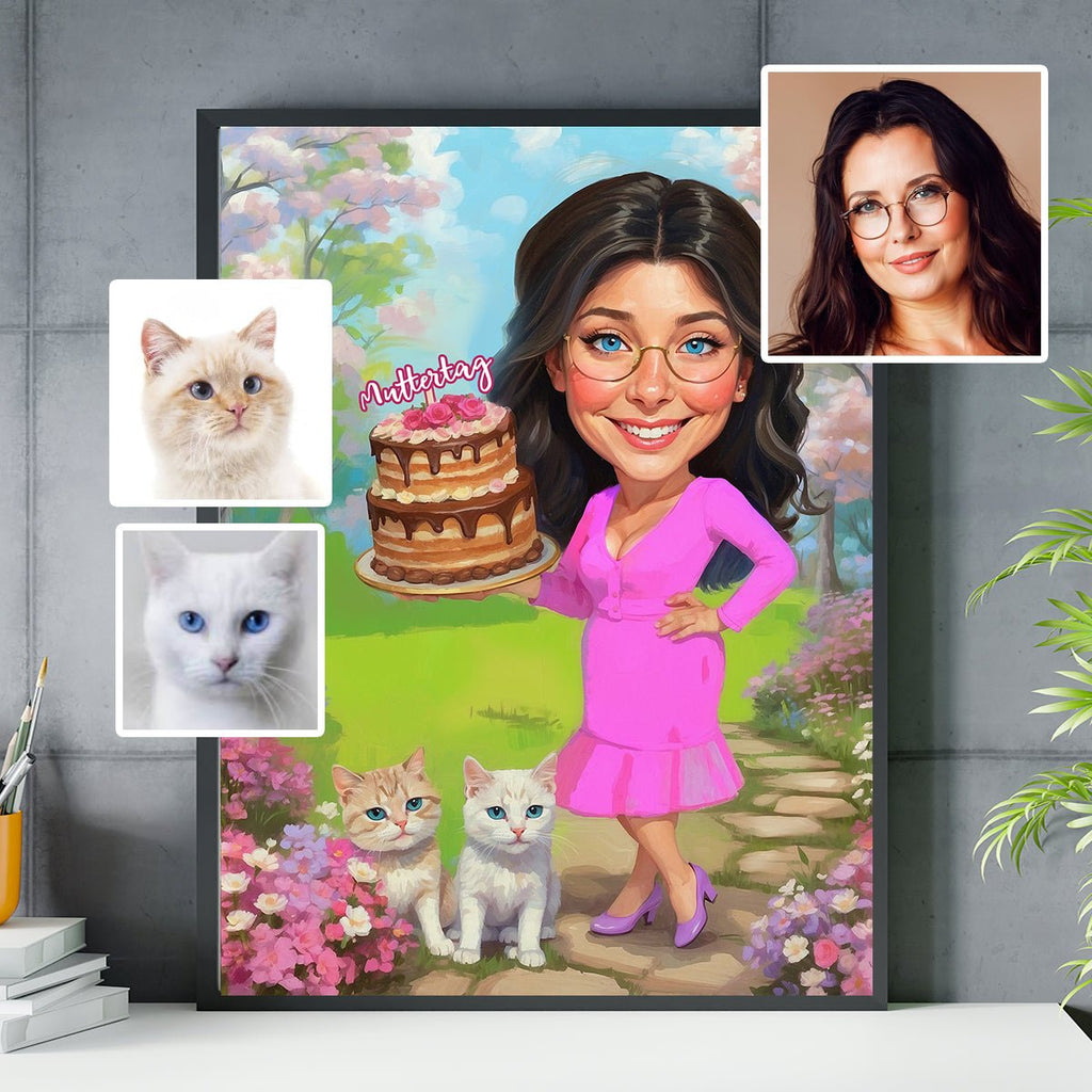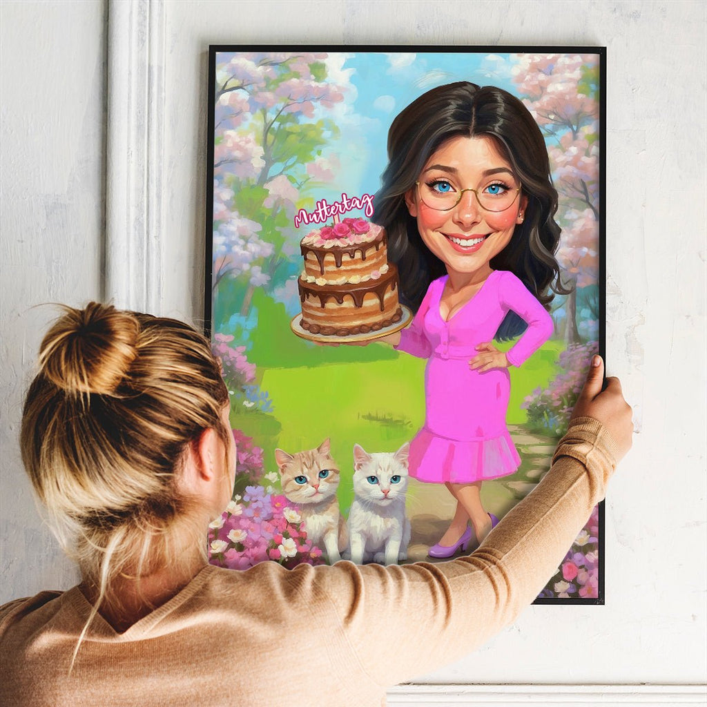 Mutter mit Torte Illustration - Poster, personalisiertes Geschenk für Mama