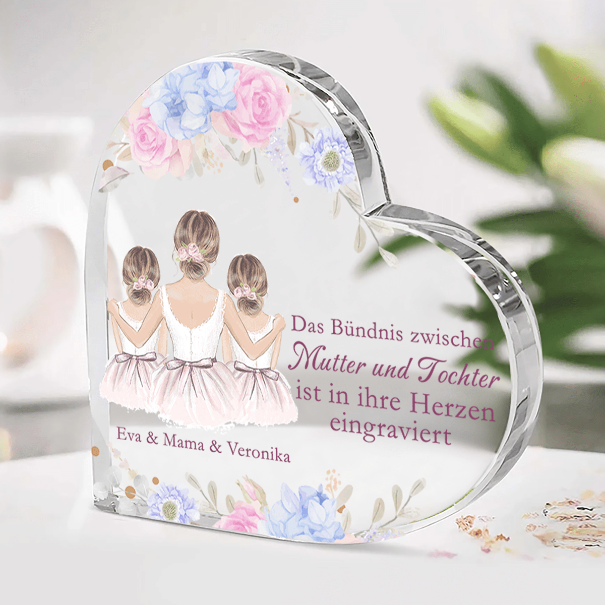 Mutter-Tochter-Bindung - Herz aus Glas, personalisiertes Geschenk für Mama