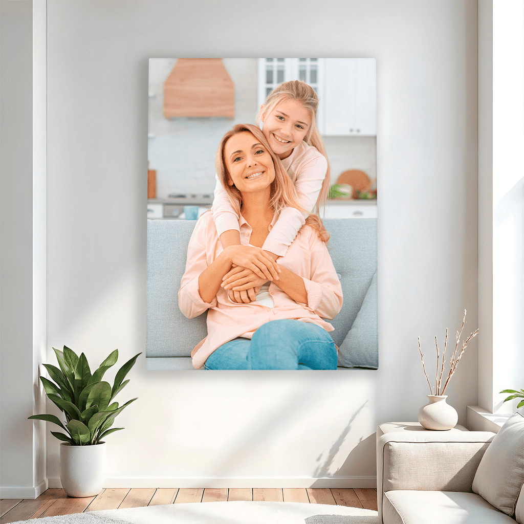 Mutter und Tochter zusammen abgebildet - Druck auf Leinwand, personalisiertes Geschenk für Mama
