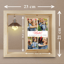 Der Ausdruck wird außerdem mit einem Rahmen aus hochwertigem Holz geliefert. Er ermöglicht es Ihnen, das Glas auf bequeme Weise zu positionieren, da er mit einem beweglichen, drehbaren Element ausgestattet ist. Ein weiterer Vorteil ist die LED-Birne, die den Druck mit warmem Licht beleuchtet und so zu einer originellen Lampe wird.