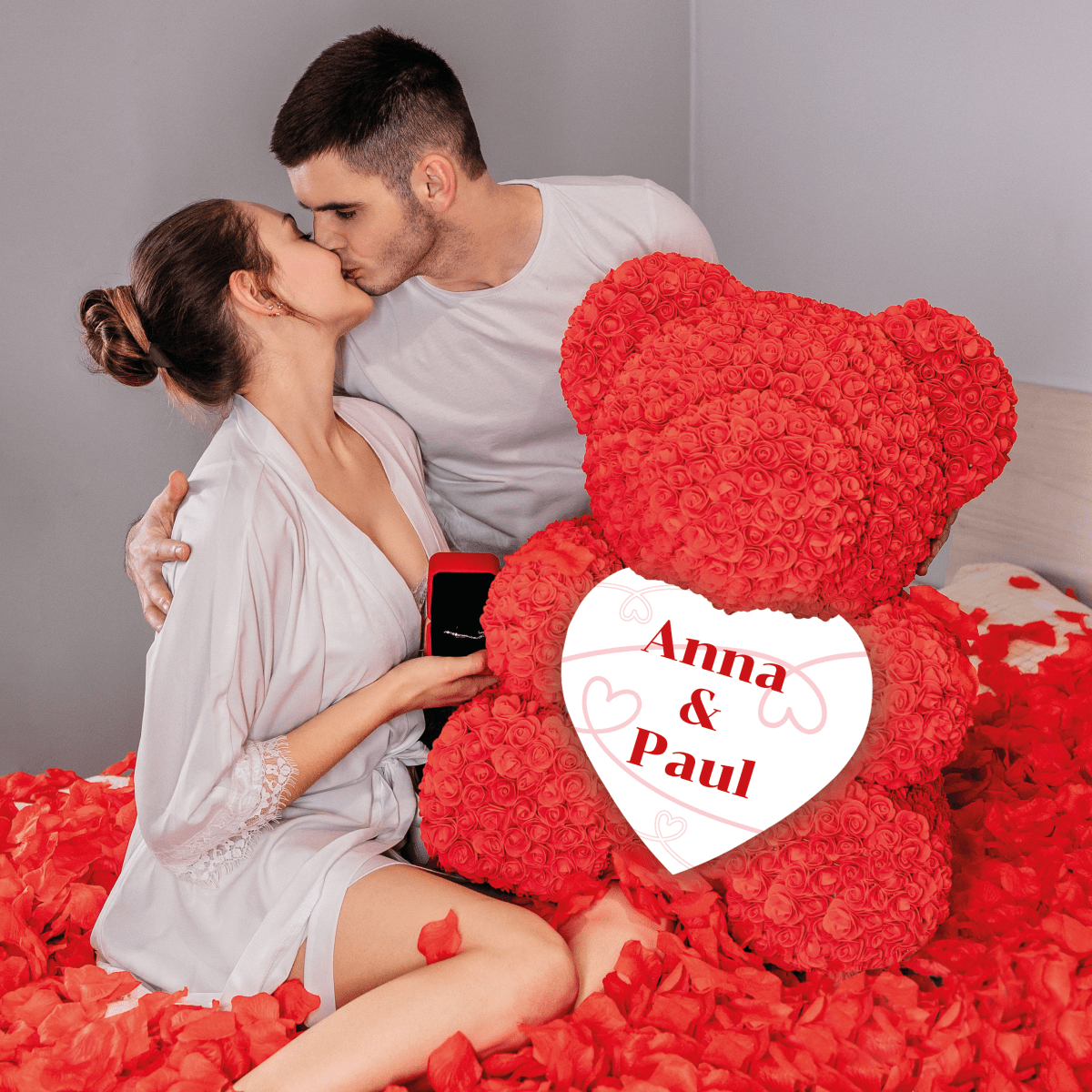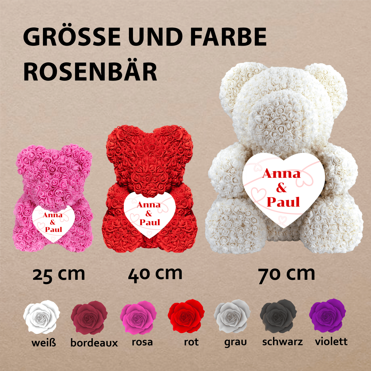 Rosenbären mit Aufdruck, personalisiertes Geschenk für Freund, Freundin, Paare, Ehefrau, Geschenk zum Valentinstag, Hochzeitstag, Frauentag, Geburstag