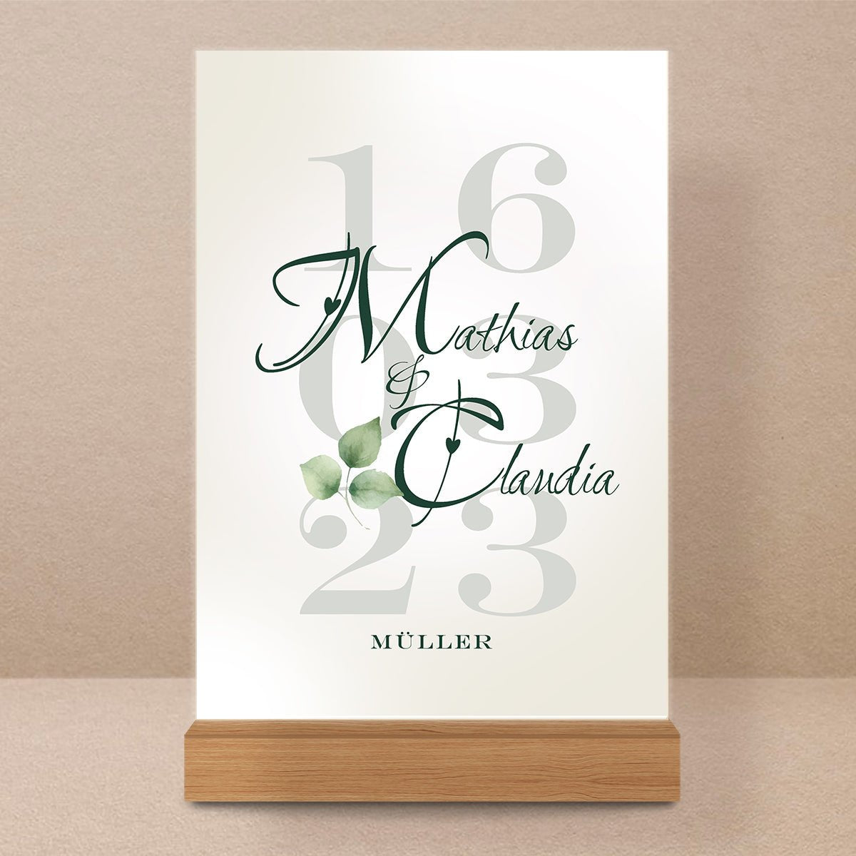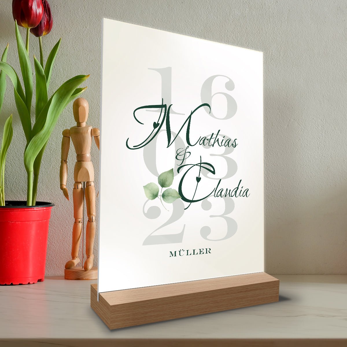 Namen und Datum für den Jahrestag - Druck auf Glas, personalisiertes Geschenk für Paar