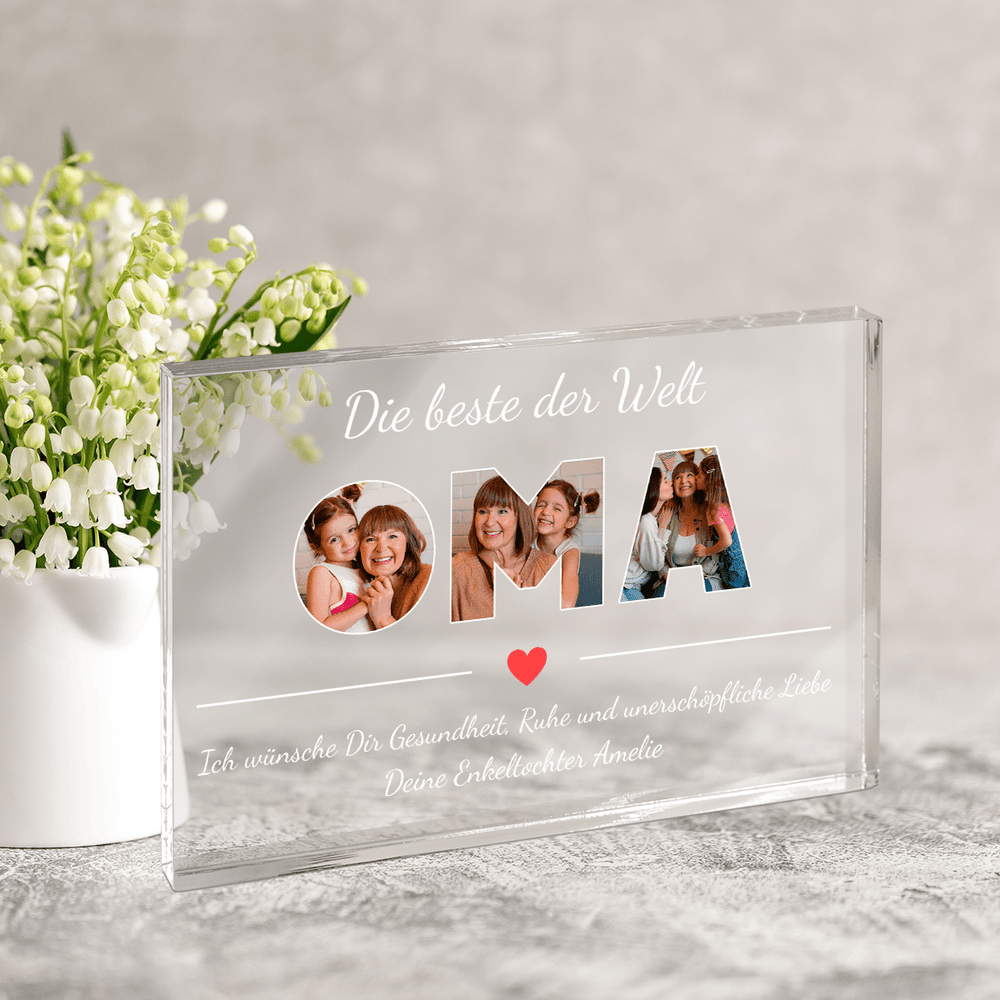 Druck auf Glas, personalisiertes Geschenk für Oma, Geschenk zum Oma-Tag, 60., 70., 80. Geburtstag, Namenstag, Weihnachten, Fotogeschenk, Geschenkidee