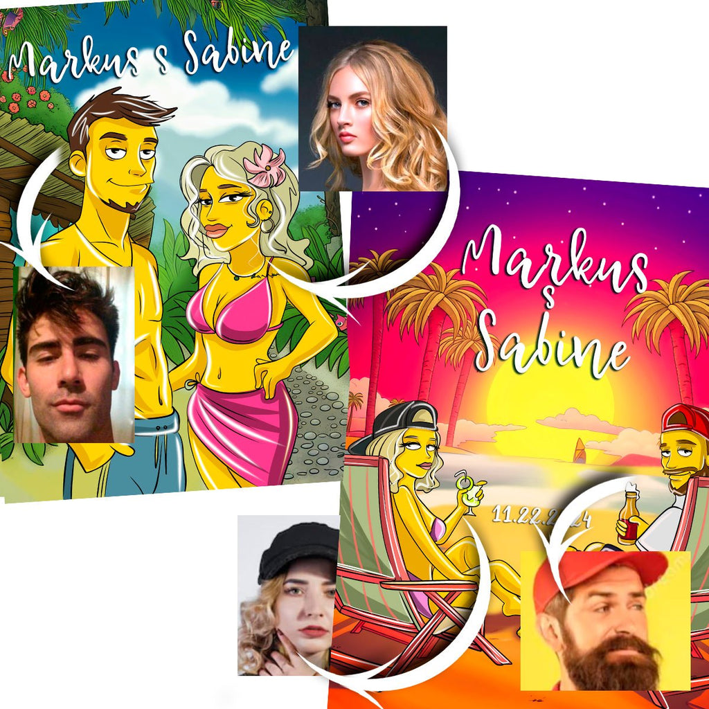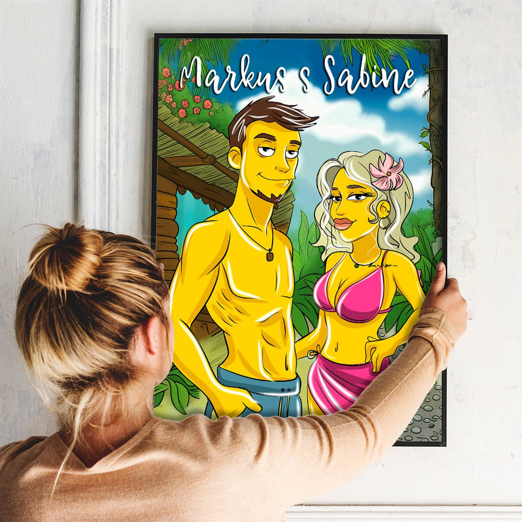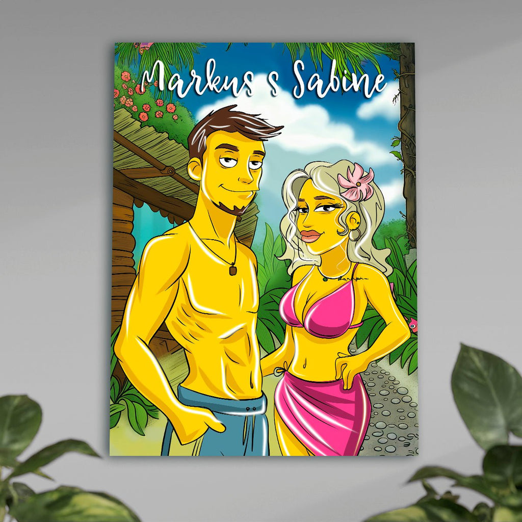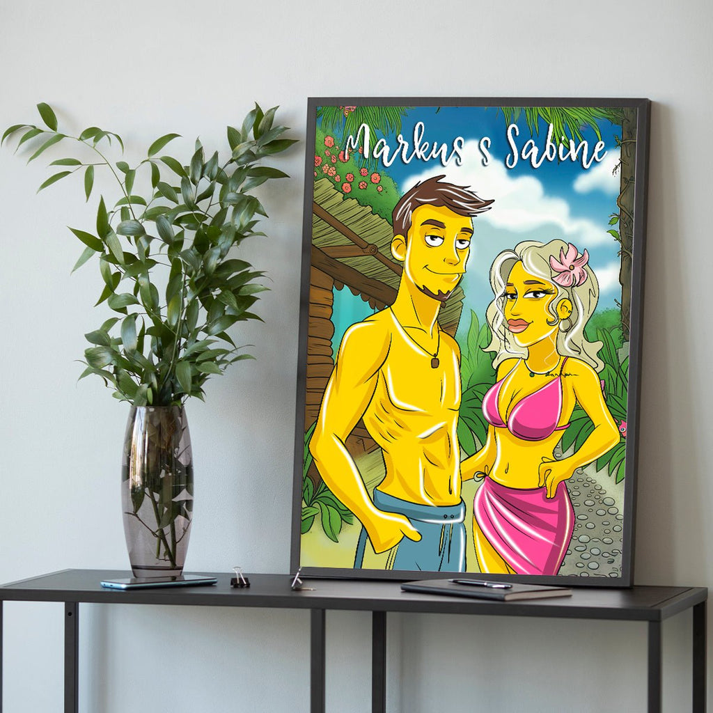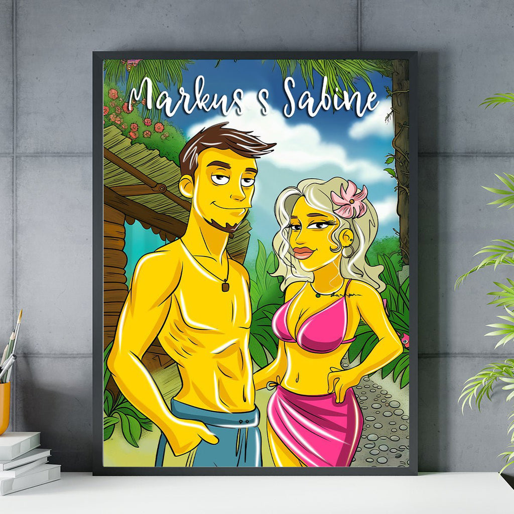 Paar im Urlaub Illustration - Poster, personalisiertes Geschenk für Paare