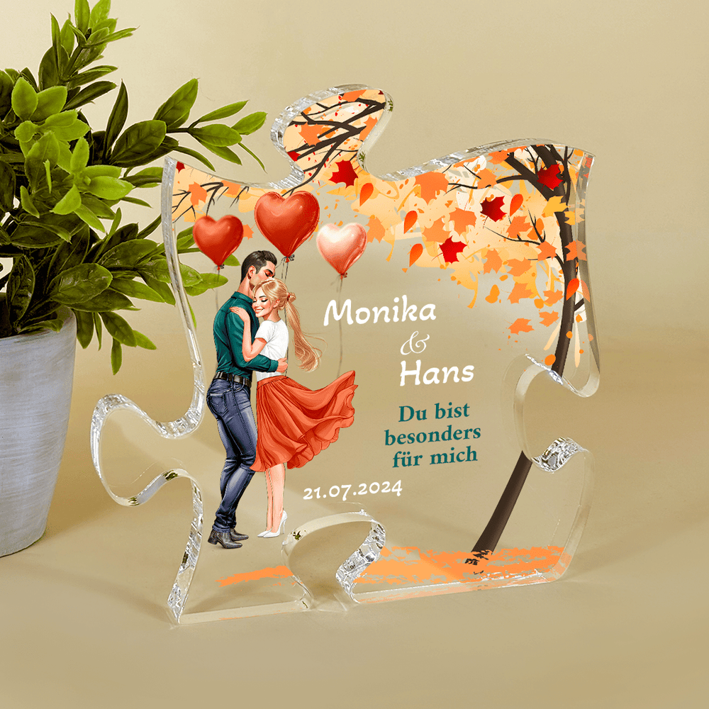 Paar mit Herbsthintergrund - Druck auf Glas - das Puzzle, personalisiertes Geschenk für Paar