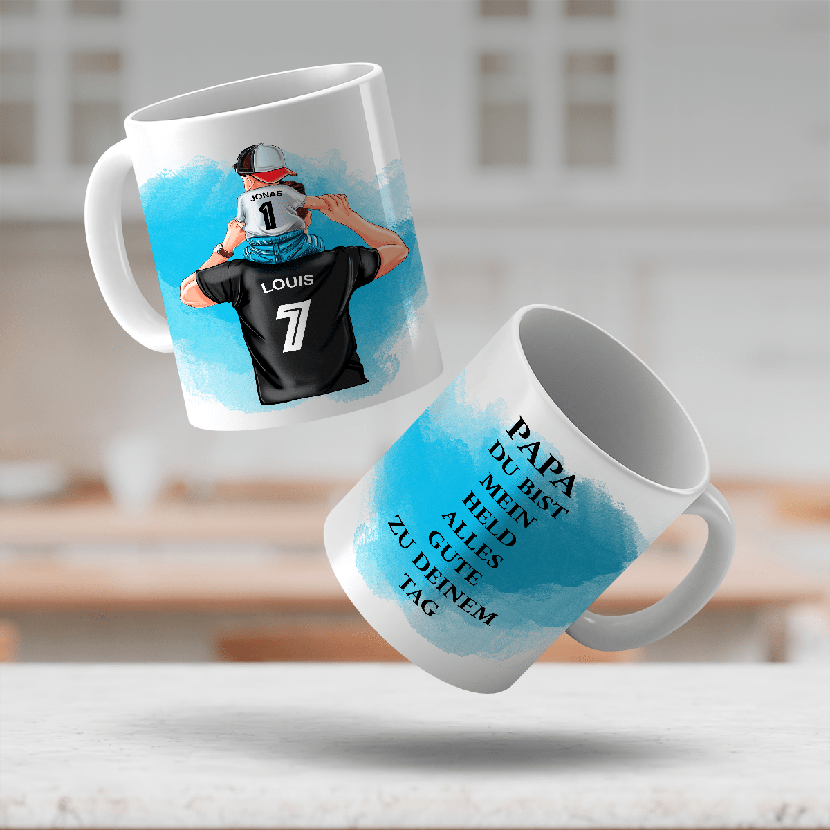 Papa mit Sohn Clipart - 1x bedruckte Tasse, personalisiertes Geschenk für Papa
