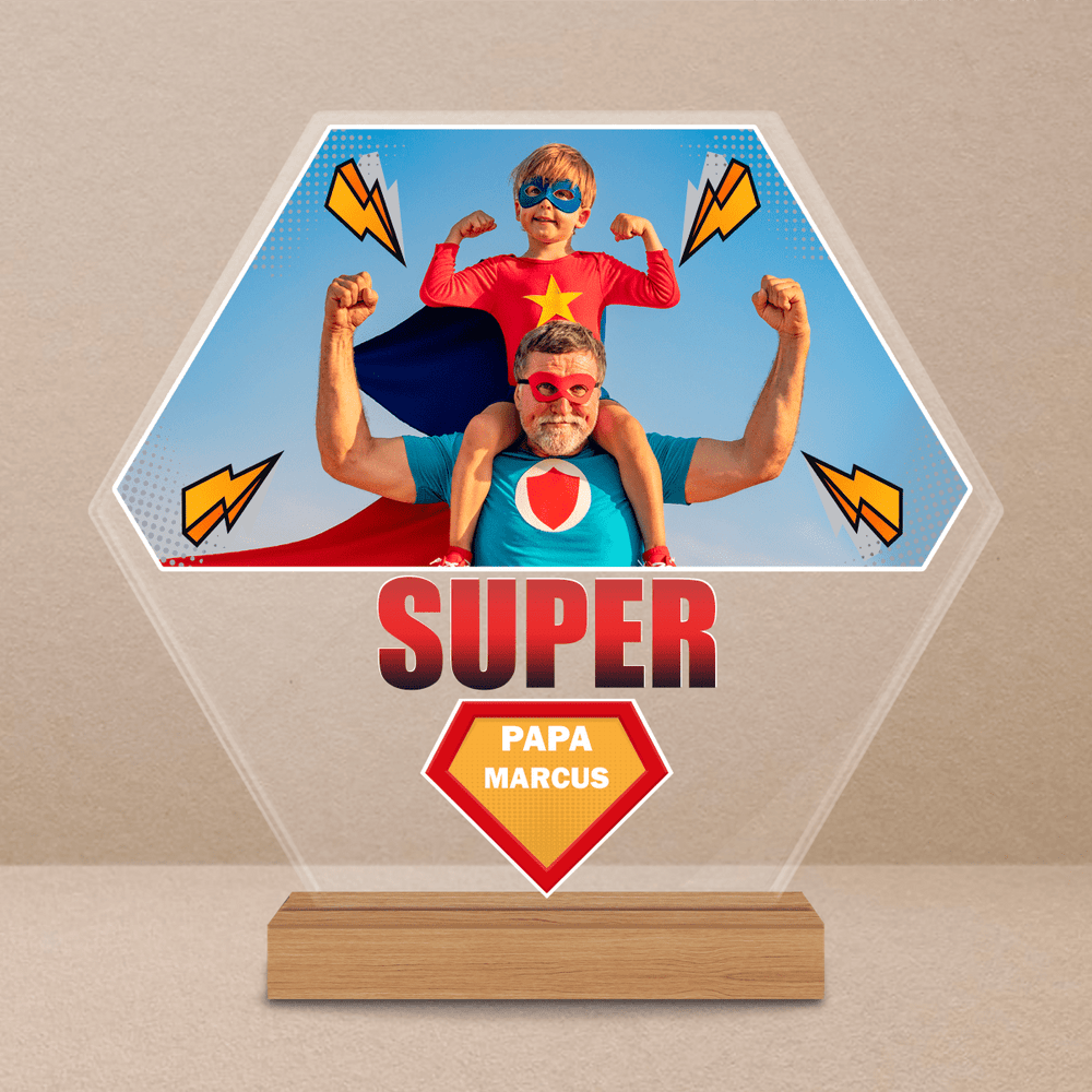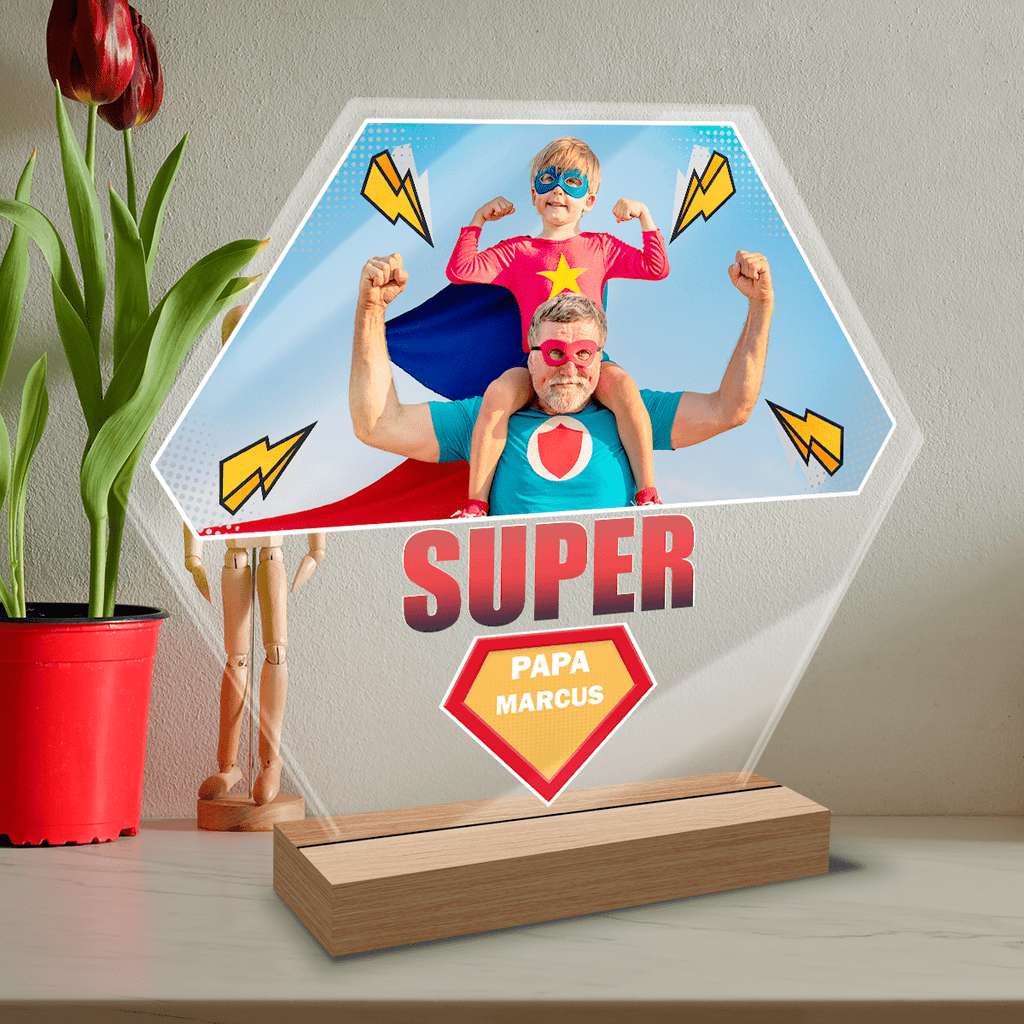 Papa Superhero - Druck auf Glas, personalisiertes Geschenk für Papa