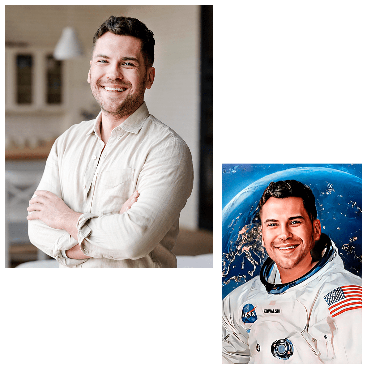 Das von Ihnen eingereichte Foto wird in ein Porträt mit mehrfarbigem Hintergrund umgewandelt. Die Vorschaubilder auf der Website zeigen, welcher grafische Effekt erzielt werden kann. Alles, was Sie brauchen, ist ein Foto in guter Qualität von der Person, die Sie beschenken möchten.