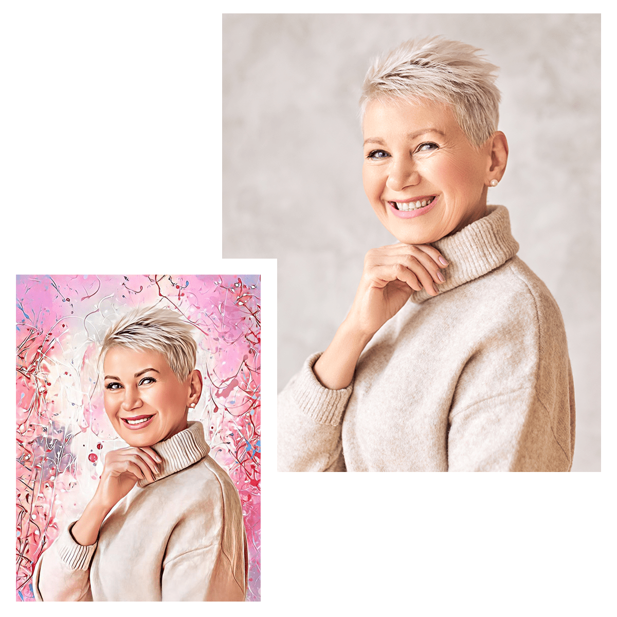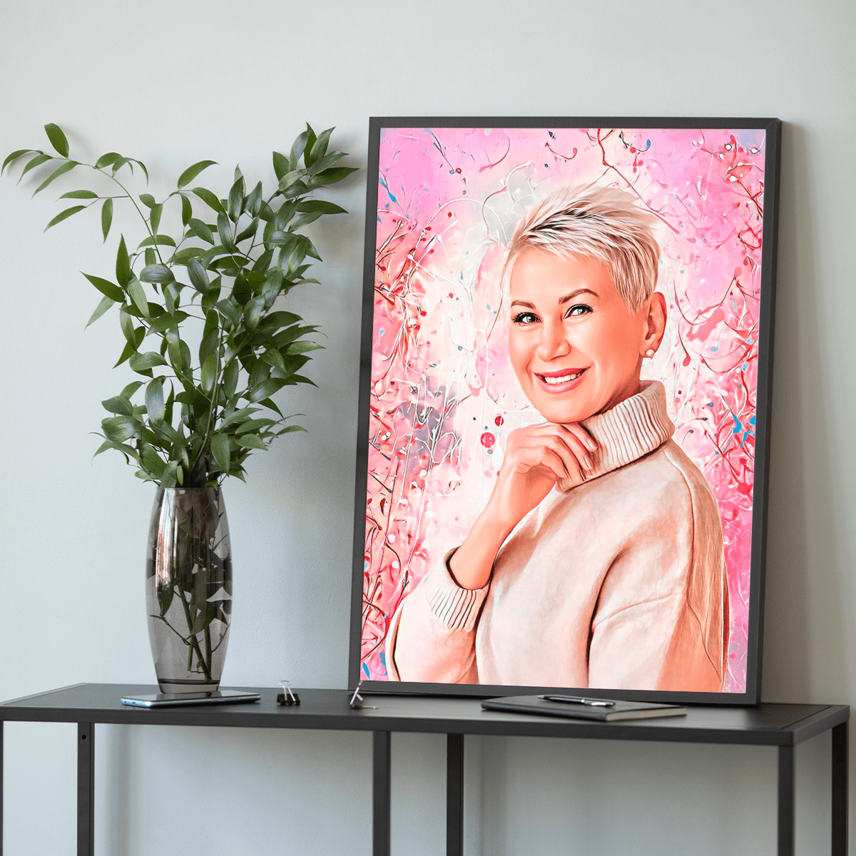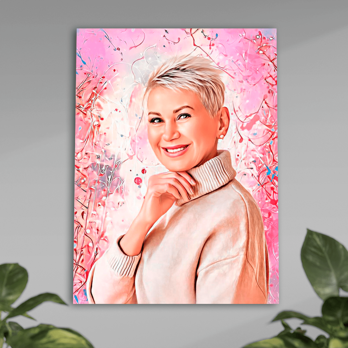 Porträt einer Mama + farbiger Hintergrund - Poster, personalisiertes Geschenk für Mama