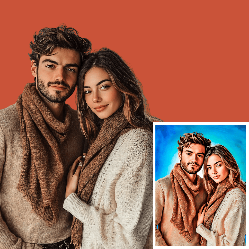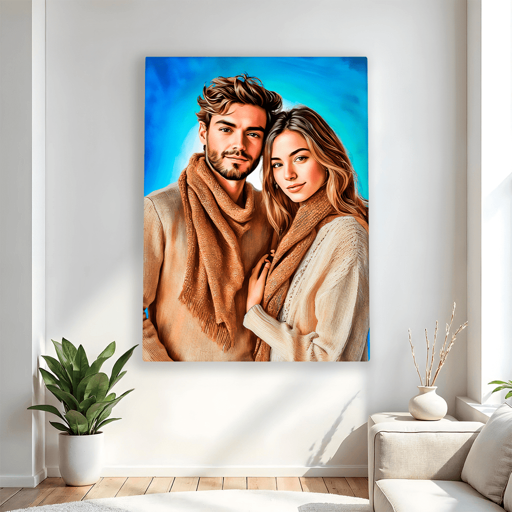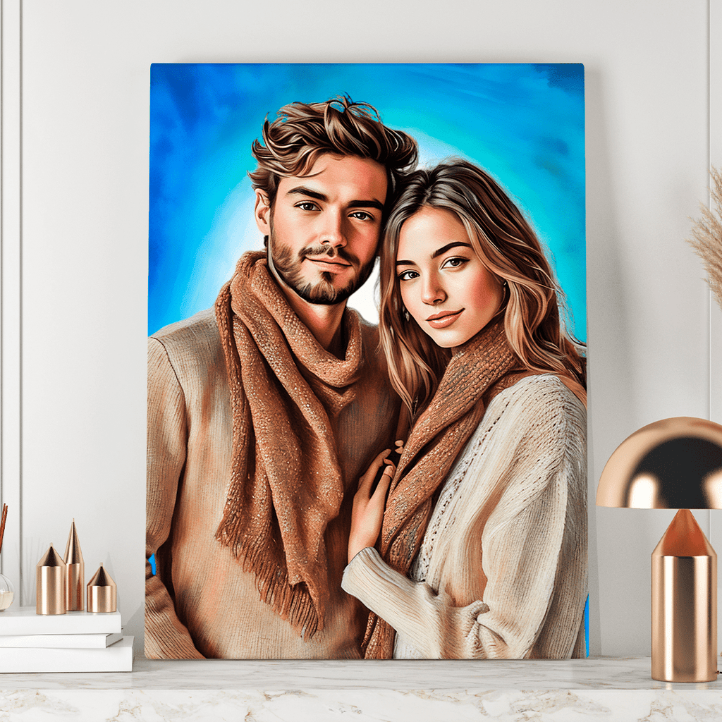 Porträt mit blauem Hintergrund - Druck auf Leinwand, personalisiertes Geschenk für Paare