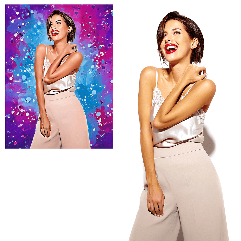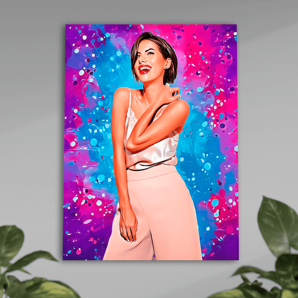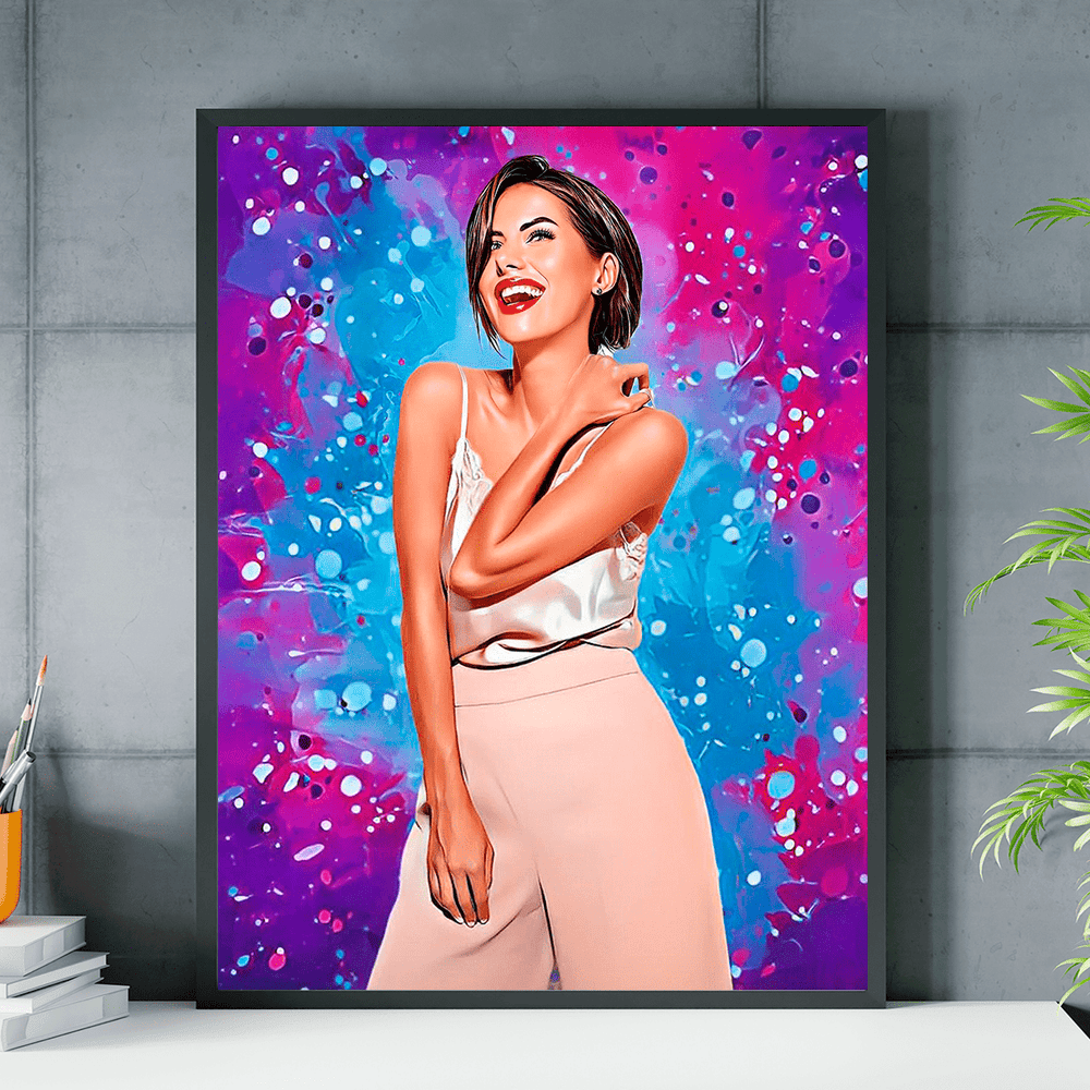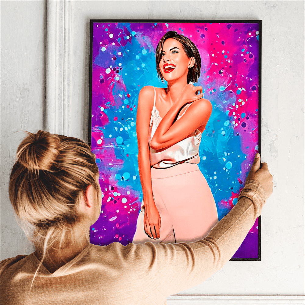 Porträt mit farbigem Hintergrund - Poster, personalisiertes Geschenk für Frau